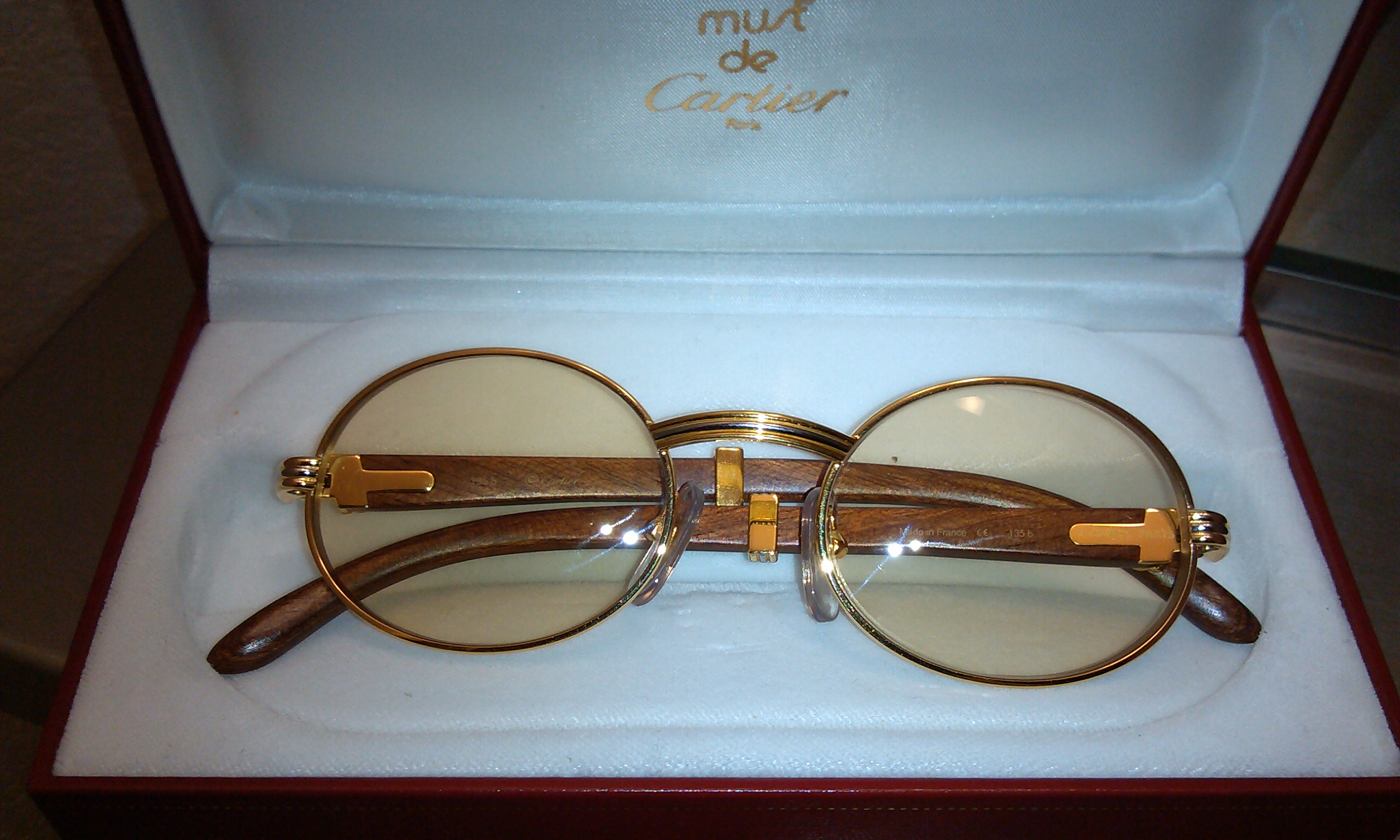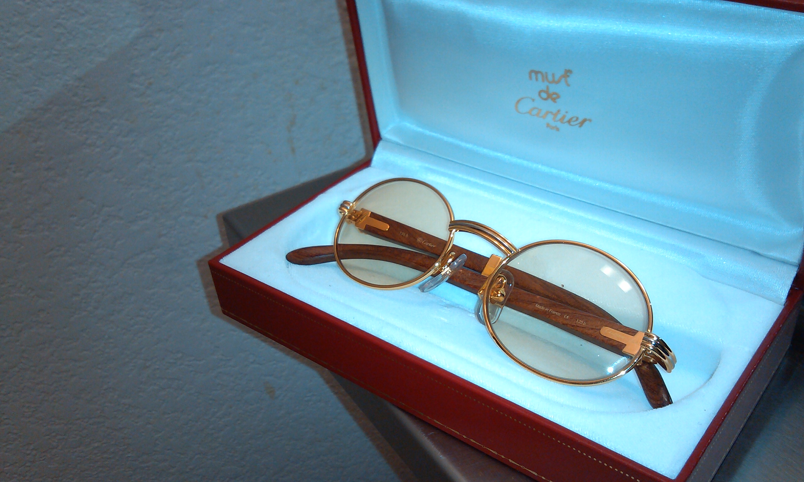 These are vintage must de cartier giverny limited edition glasses.the frame is soild palladium and plated with 10 microns of 18kt gold and 10 microns platnium.it has bubigna wood which is from africa..there were only 4000 of these limited edition made..check out the pics.these frames are also 20 years old.