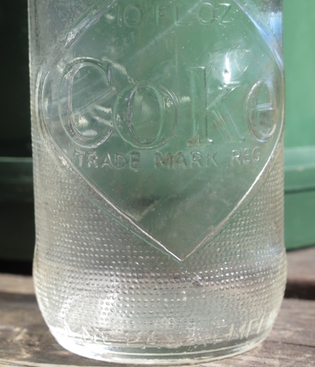 Front: CocaCola, Back: Coke. 10 FL OZ, Trade Mark Reg, Center script, Diamond, French script.
