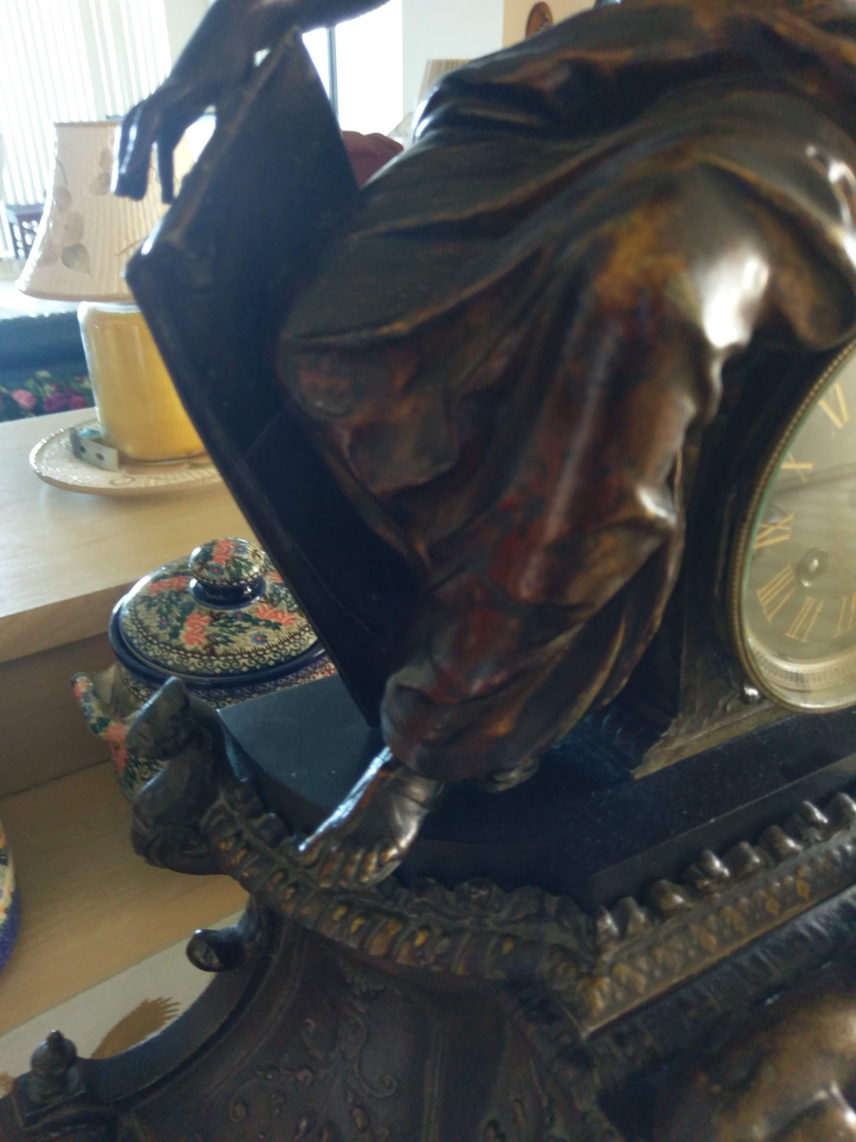 This clock was obtained by my parents back in 1967 and was a gift from a very wealthy engeneer who workerd all over the world, but lived in Madrid Spain. The clock is bronze, stan ds about 24 inches tall and about 24 inches at the base (just a guess). On the face of the clock is says Zaragosa at the bottom and has an F then a name that starts with an A at the top of the face.. The number 14473 is stamped into the works of the clock.
