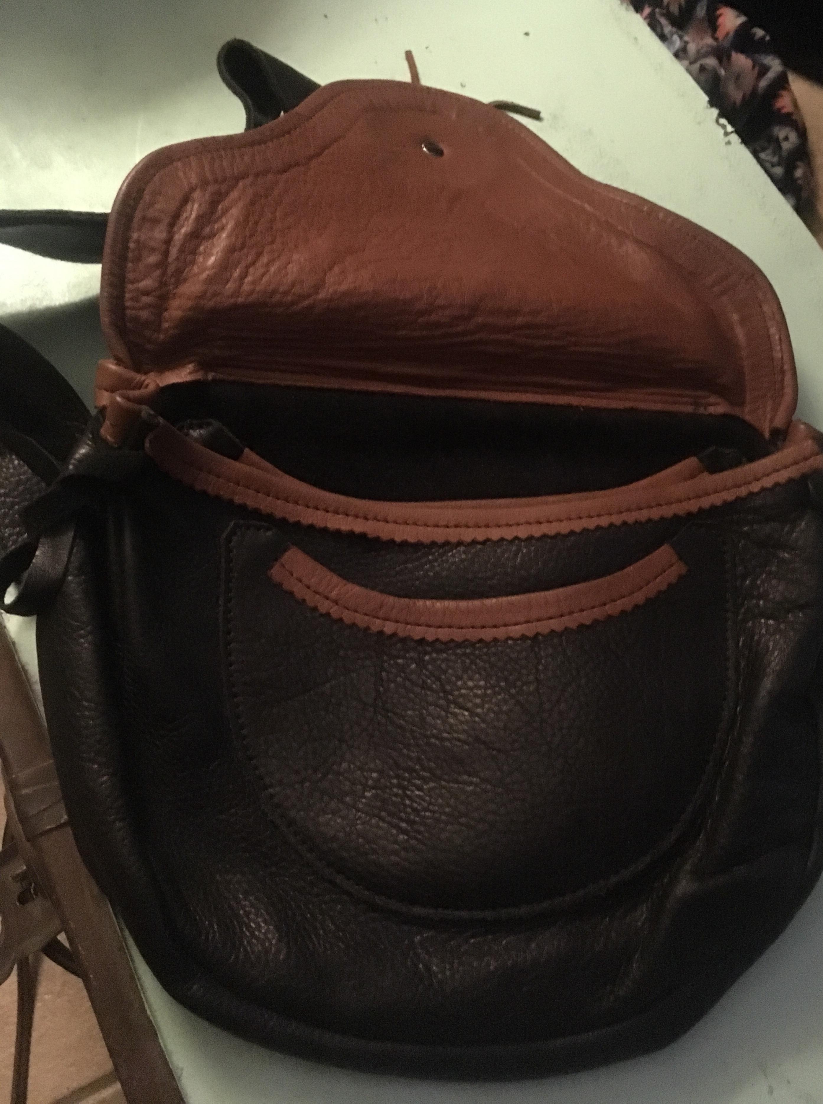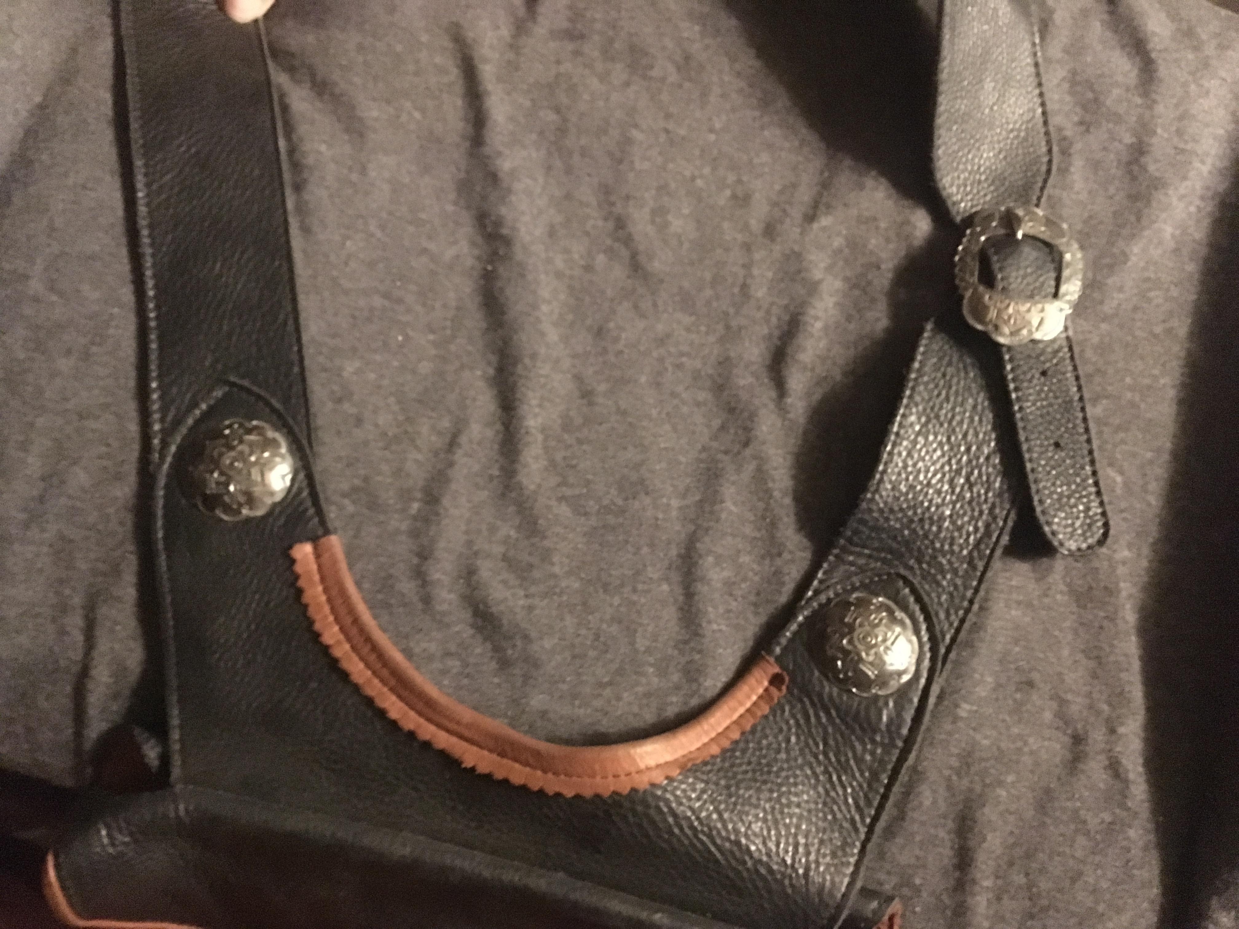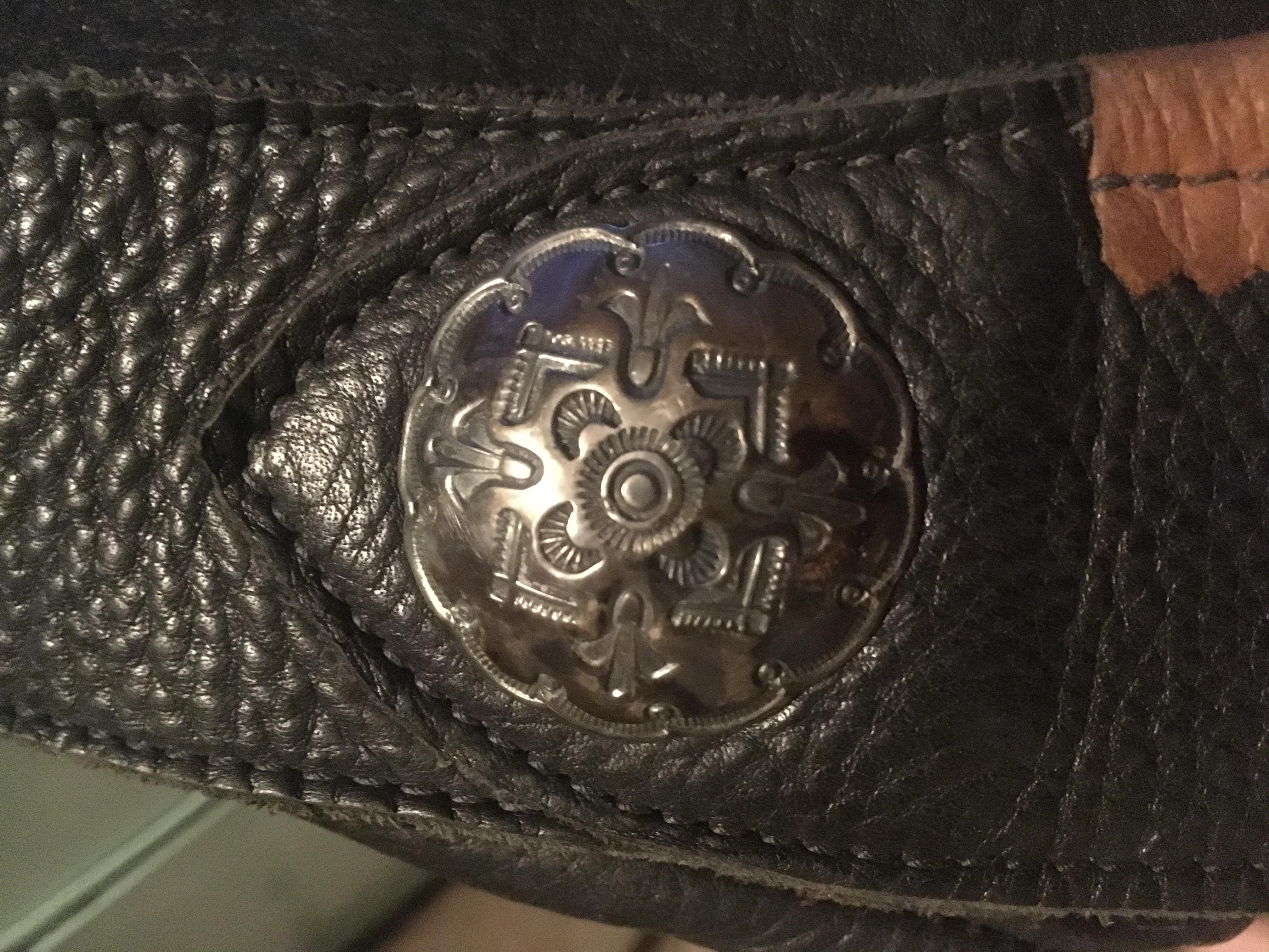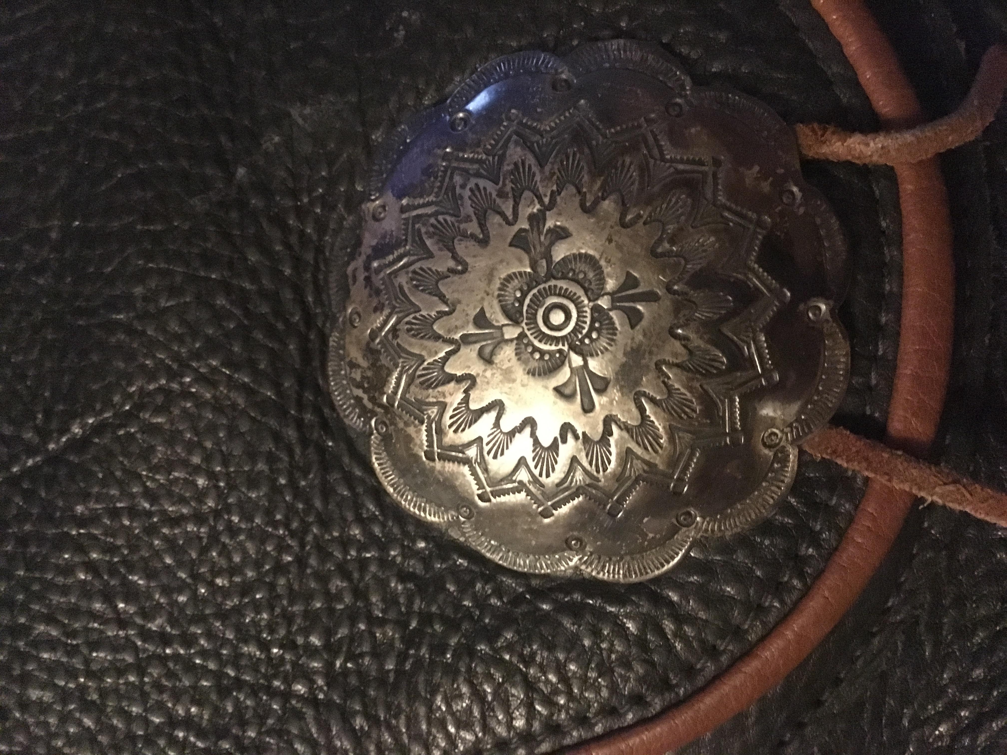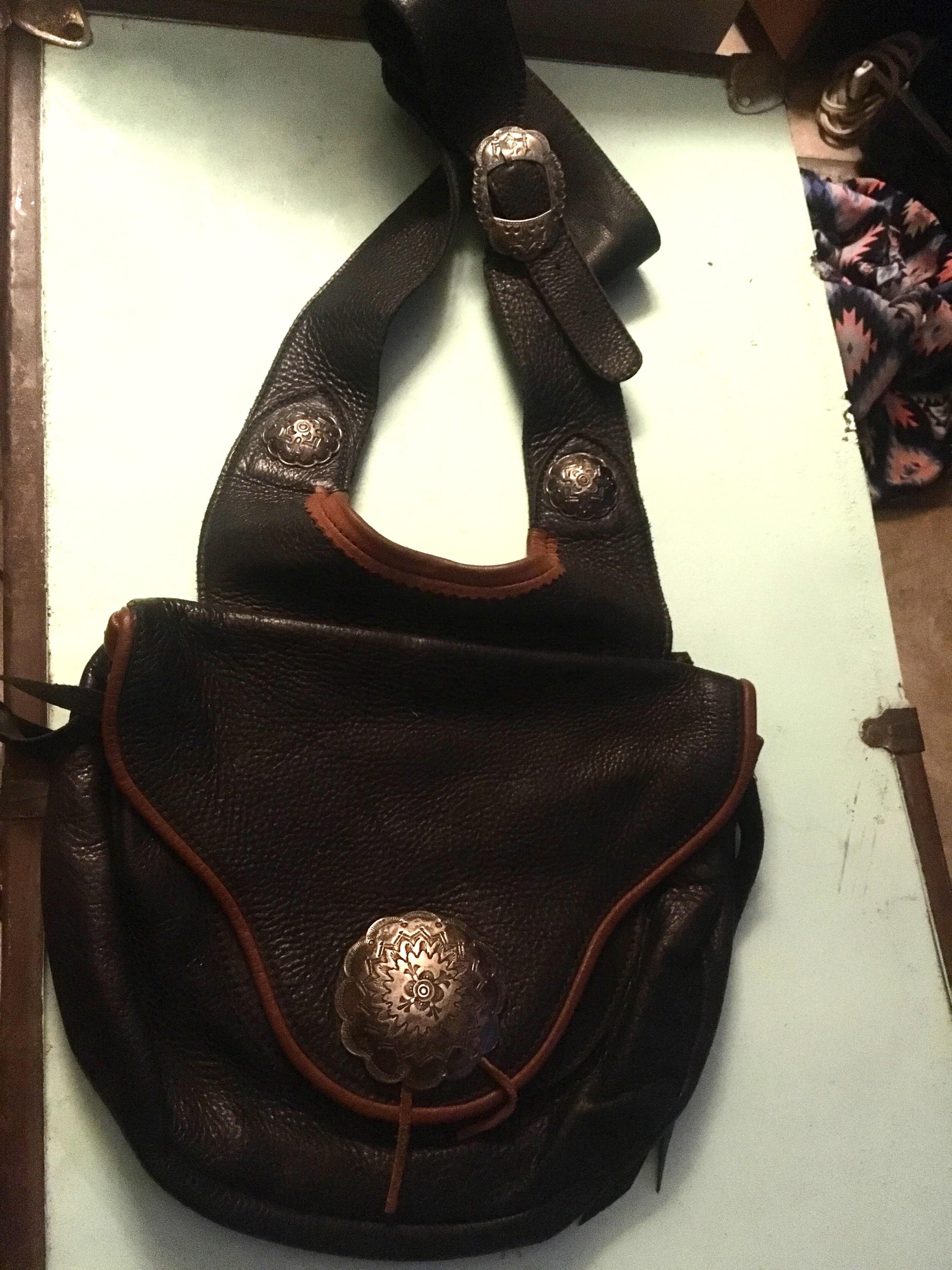 rare Dee Morris signed sterling silver/leather purse is in very nice vintage condition. Purse features signed silver buckles by Dee Morris and an unique saddle design. There are three pockets besides the main compartment. The leather condition and stitching are in excellent condition. Leather has a nice distressed look. There are no damages. Never used.