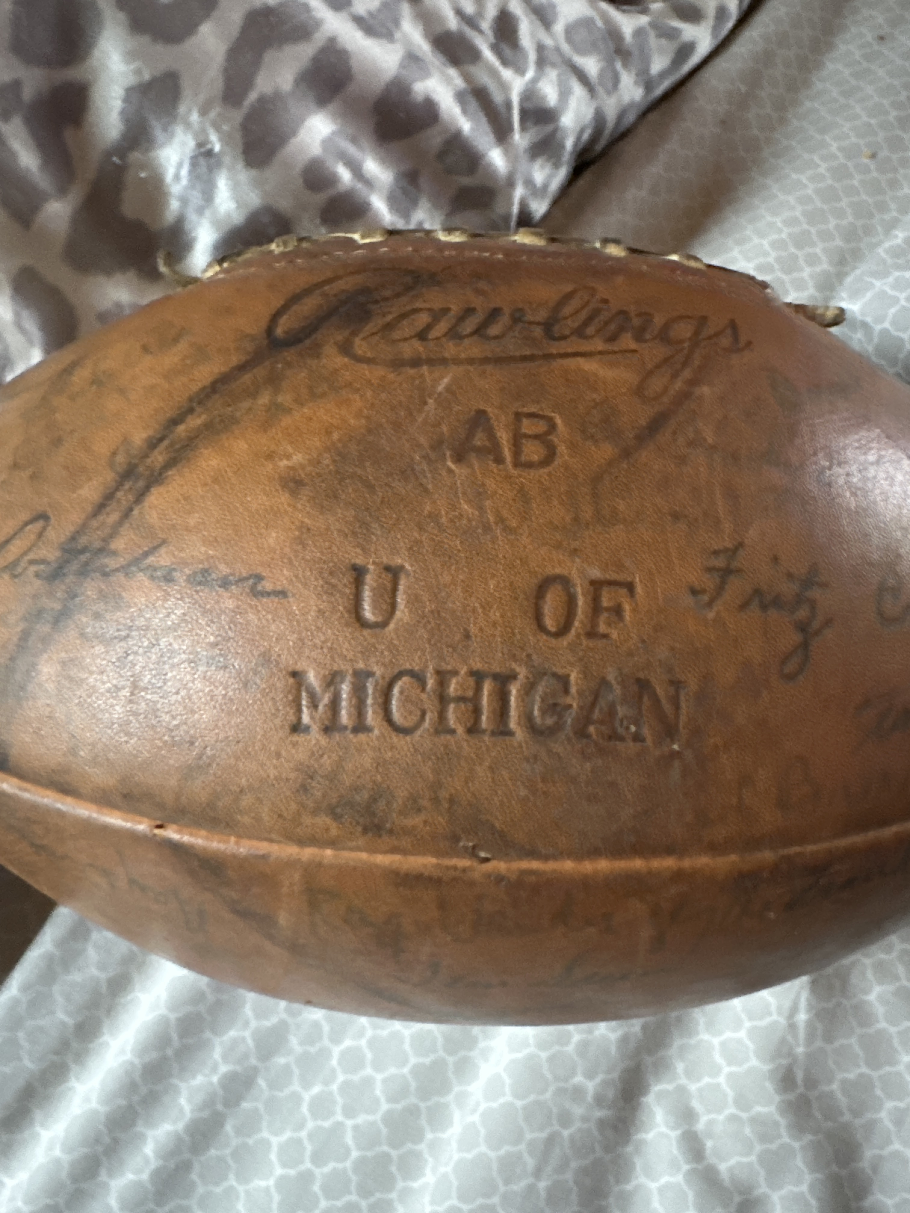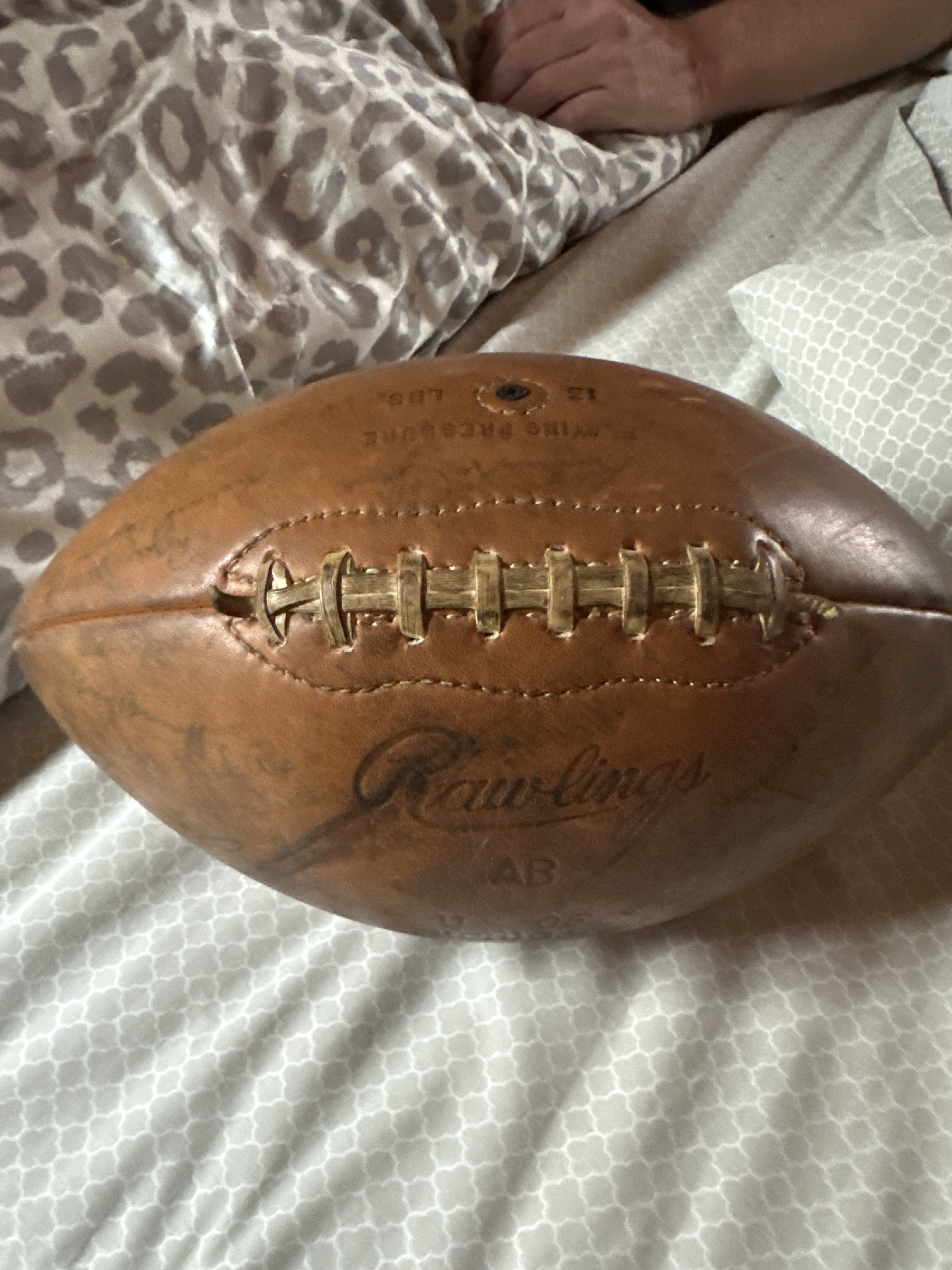 Rawlings Football by Rawlings Manufacturing Co.. Made by Rawlings Manufacturing Co.. Materials: Leather. Estimated value: $1,000 – $1,500. Condition: Good. The market for vintage sports memorabilia is currently strong, with rising prices for similar items.