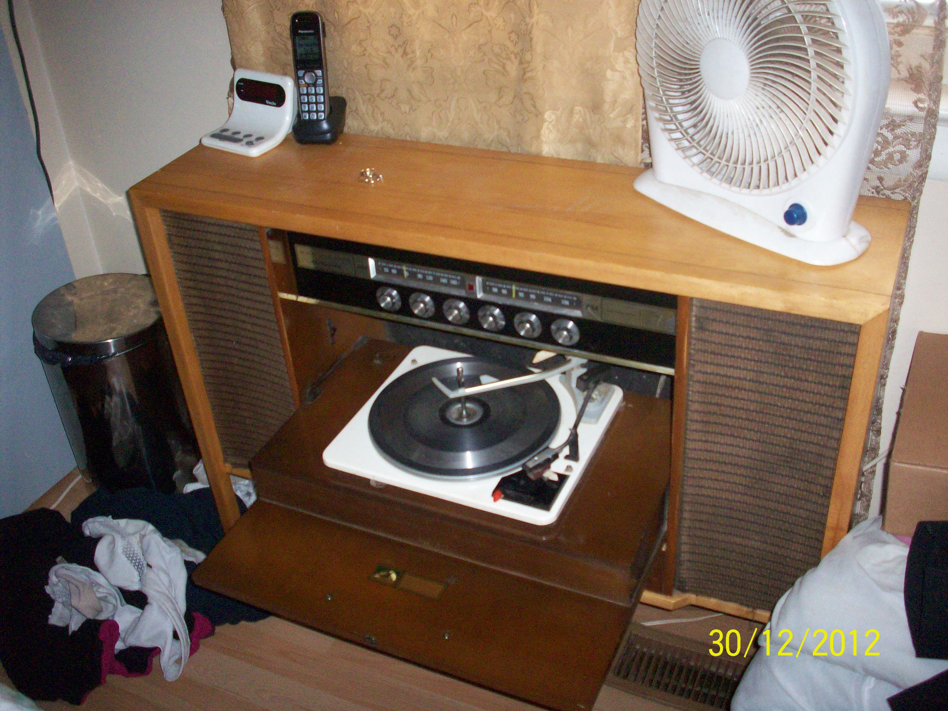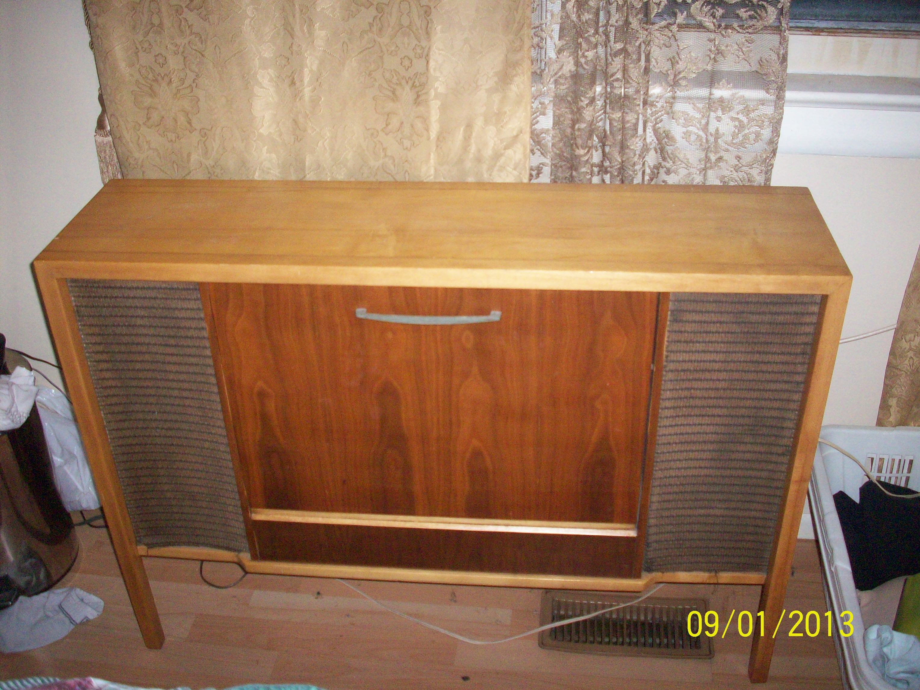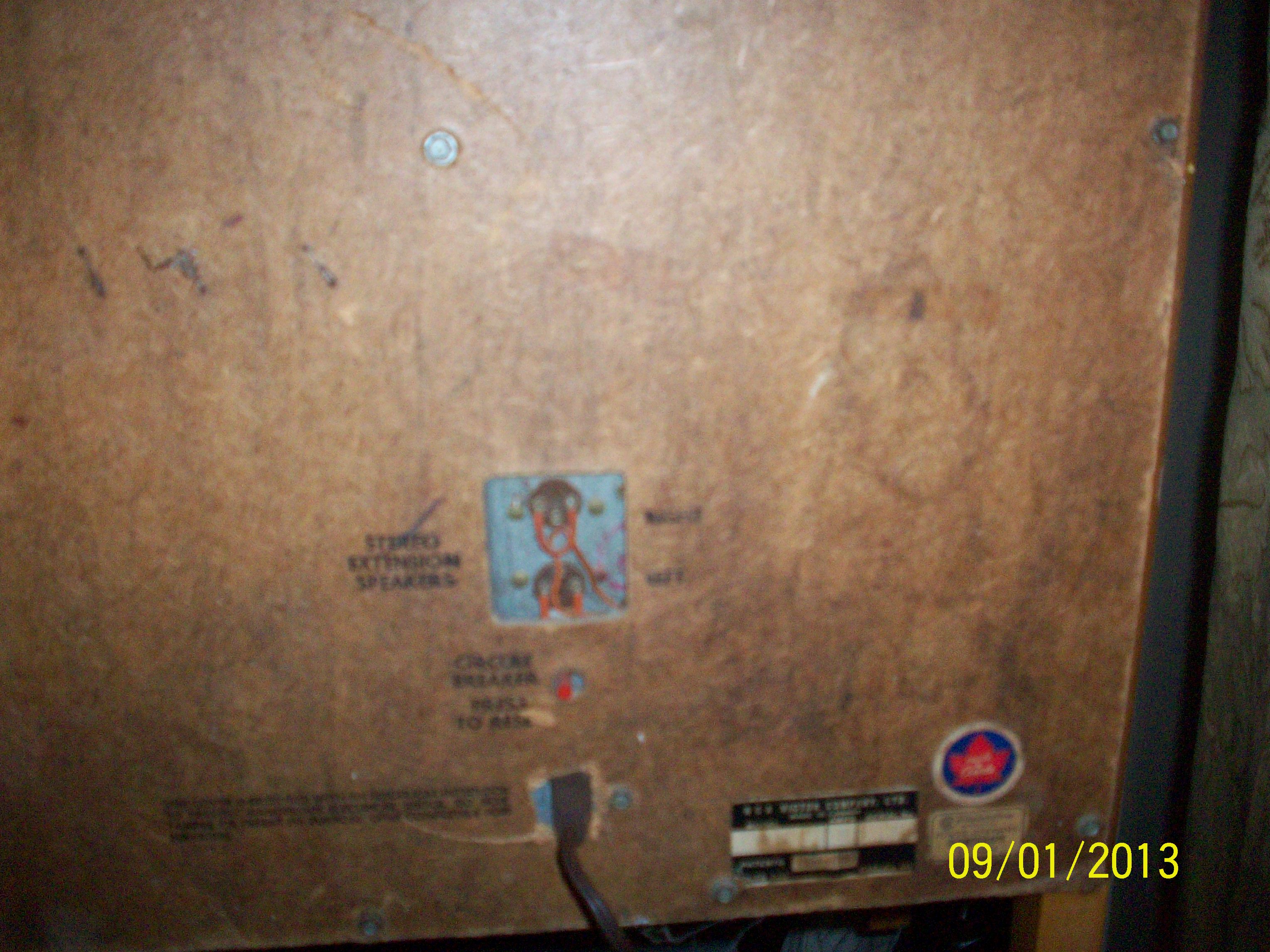 IS ALL ORIGINAL WITH ORIGINAL HARDWARE, SCREWS, ANTENNA SCREWS, STEREO EXTENSION SPEAKERS, CIRCUIT RESET BUTTON, POWER CORD AND FABRIC COVERING OVER SPEAKERS