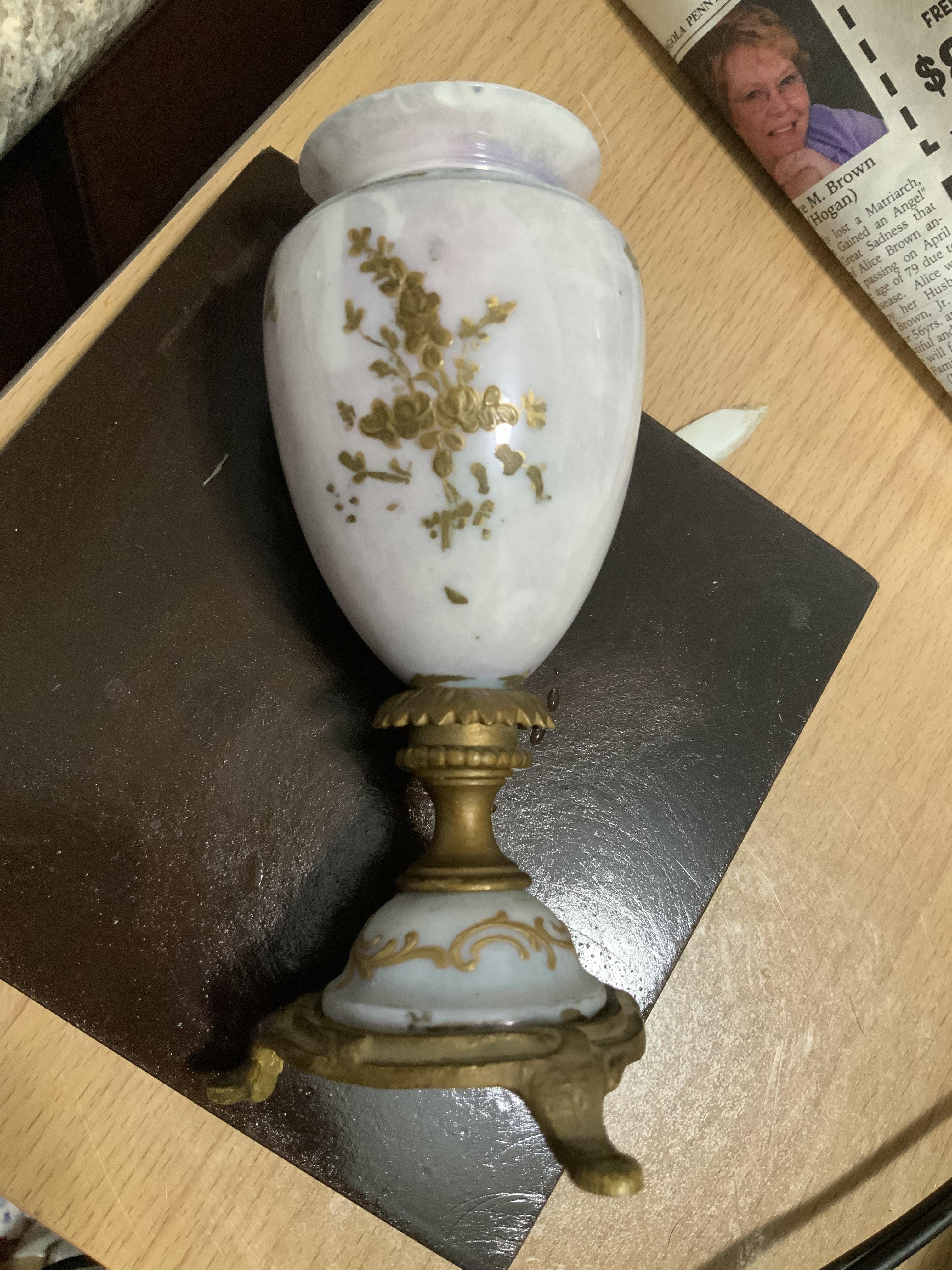 I found it in a box at a farm auction, it is chipped but I have the piece and it can be repaired if it’s worth fixing