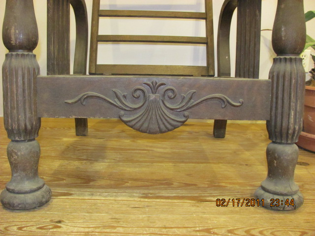 reclining chair, shell carviing on arms and apron, large round legs