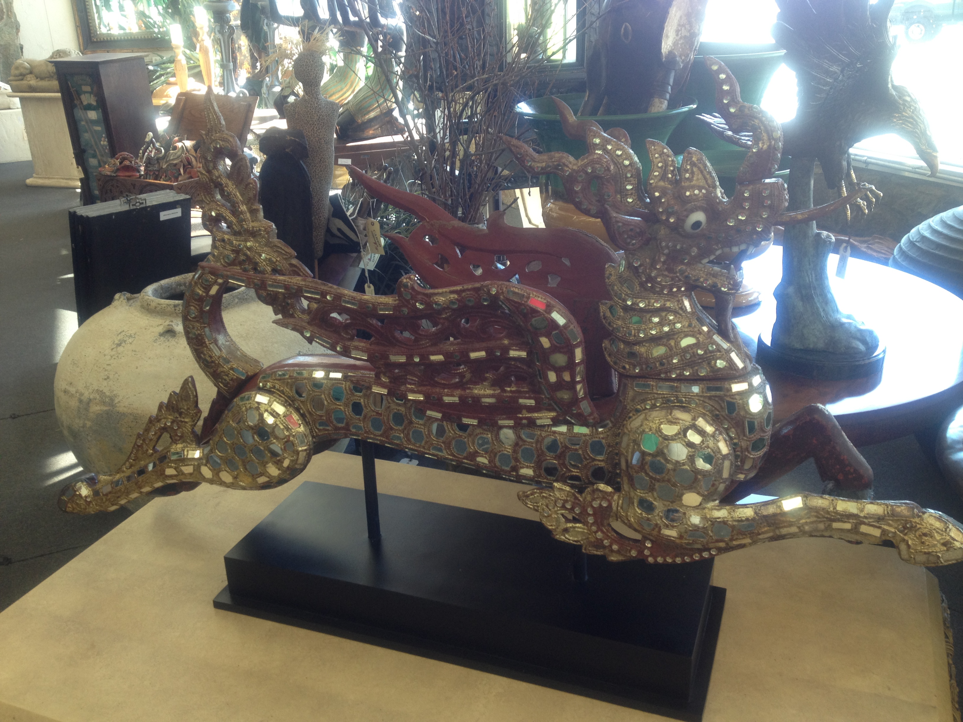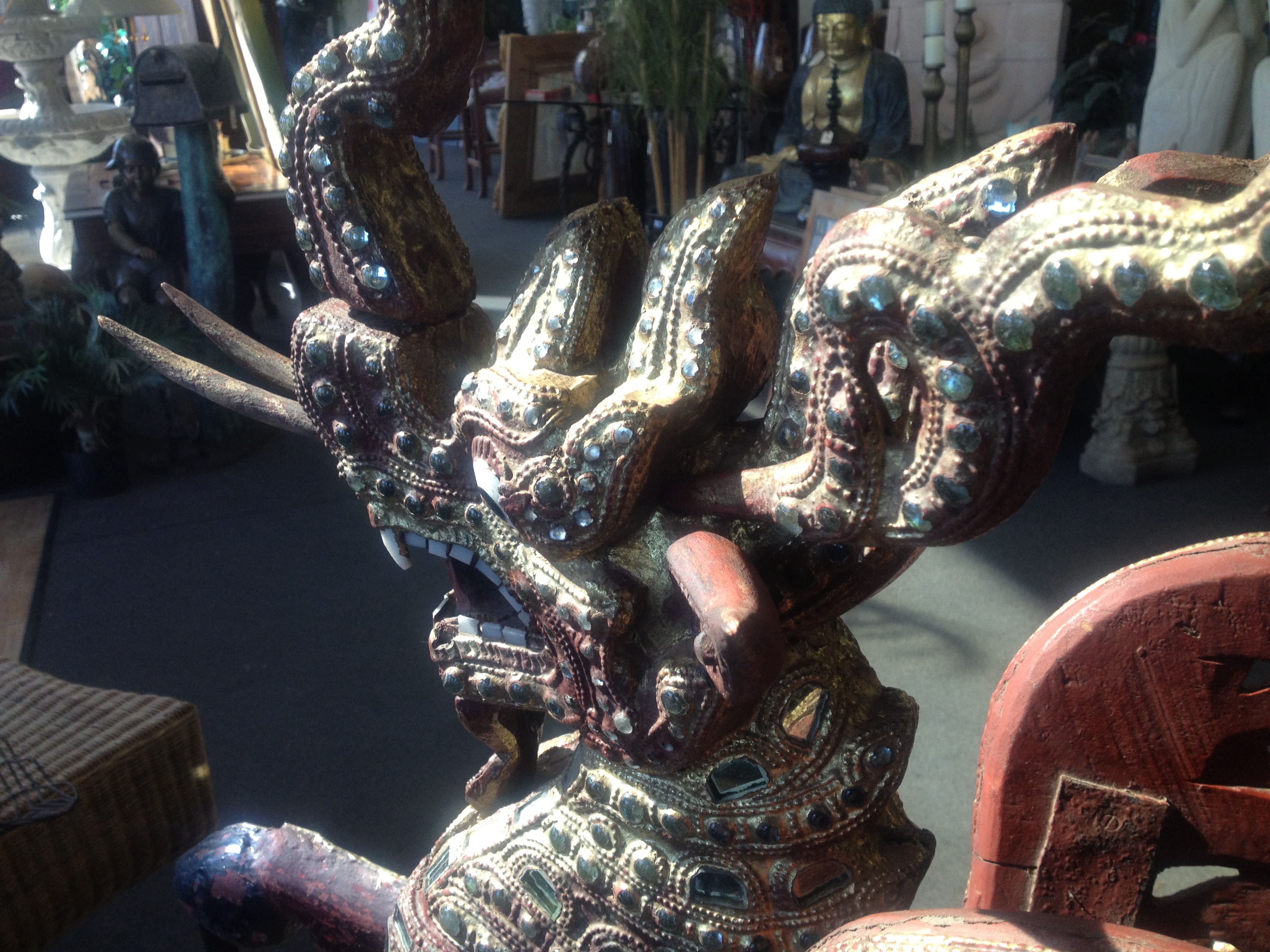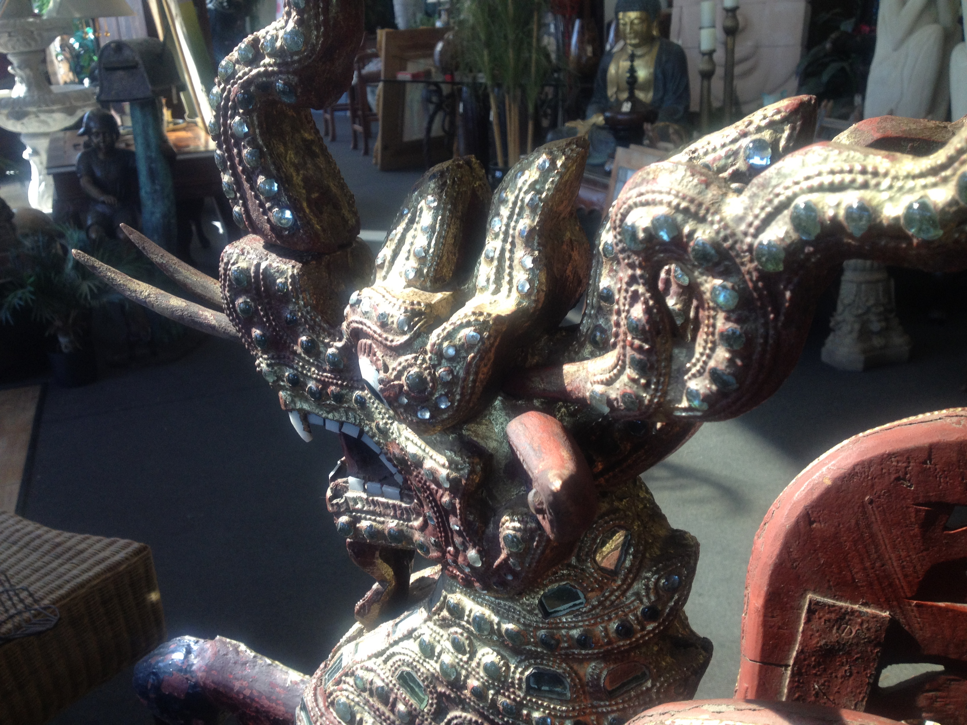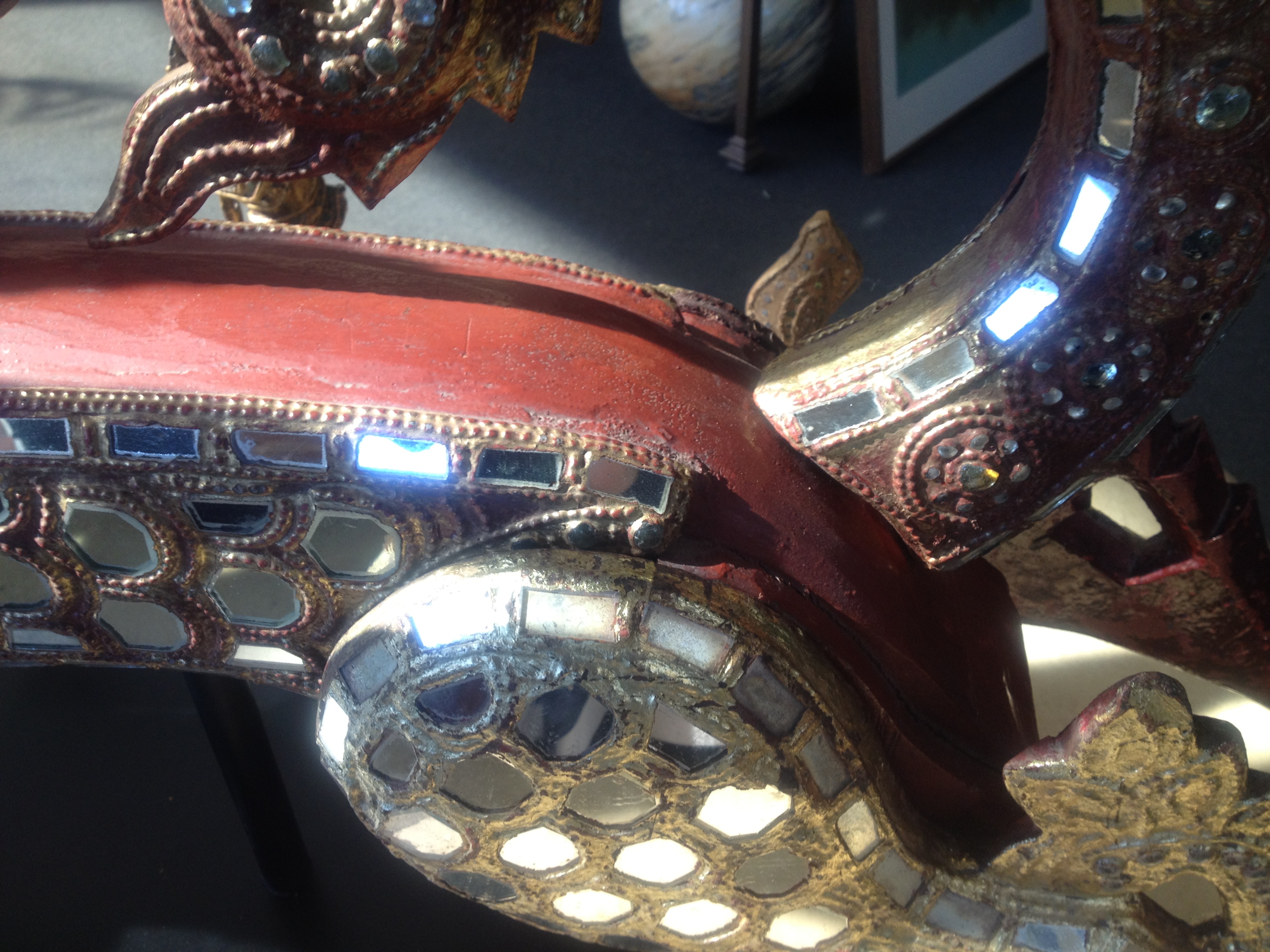 Red Dragon made of teak and glass from Thailand