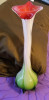 These litlle glass bottls are red glass with blown glass tops. the tops are pourous.