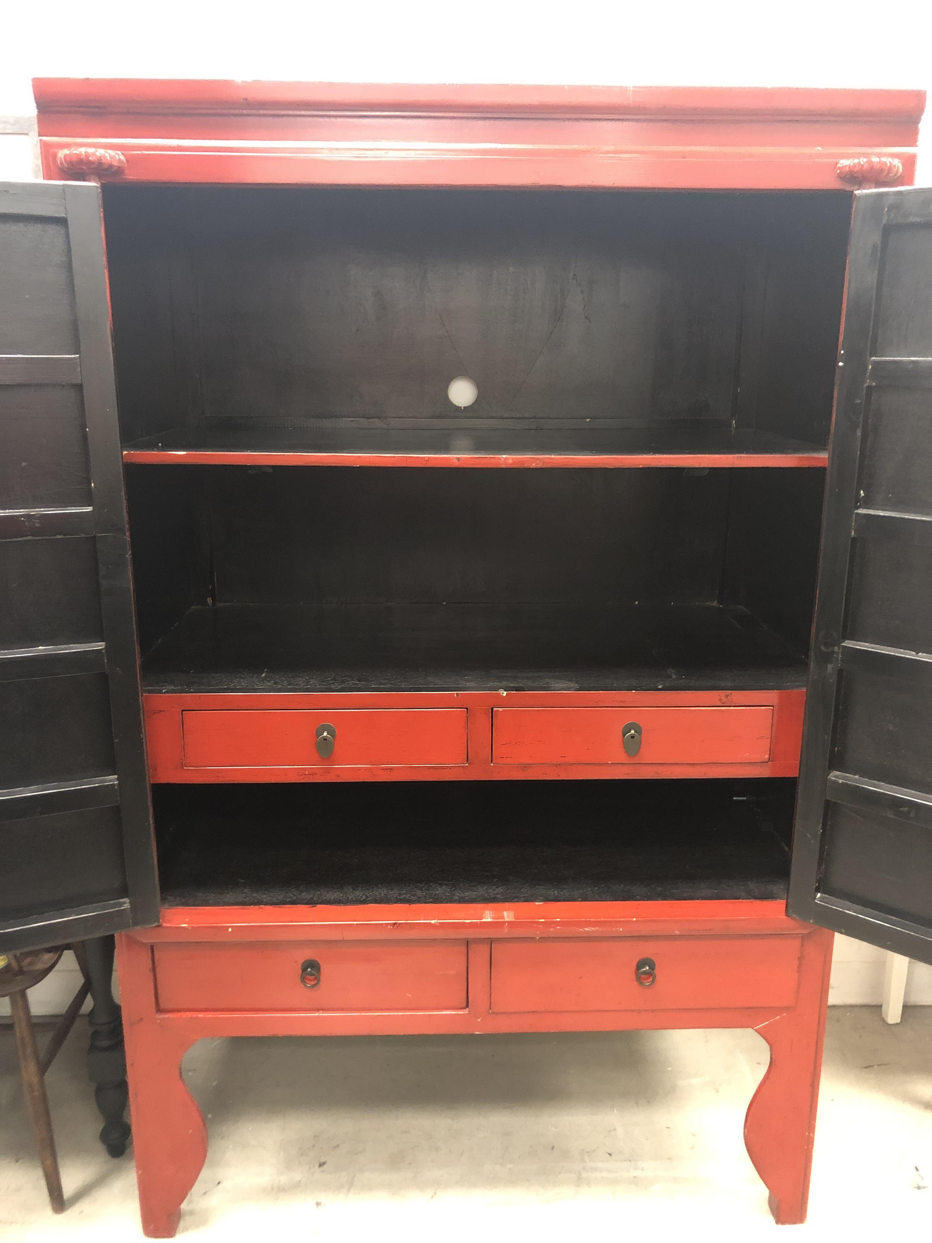 Red Lacquer Chinese Wedding Cabinet