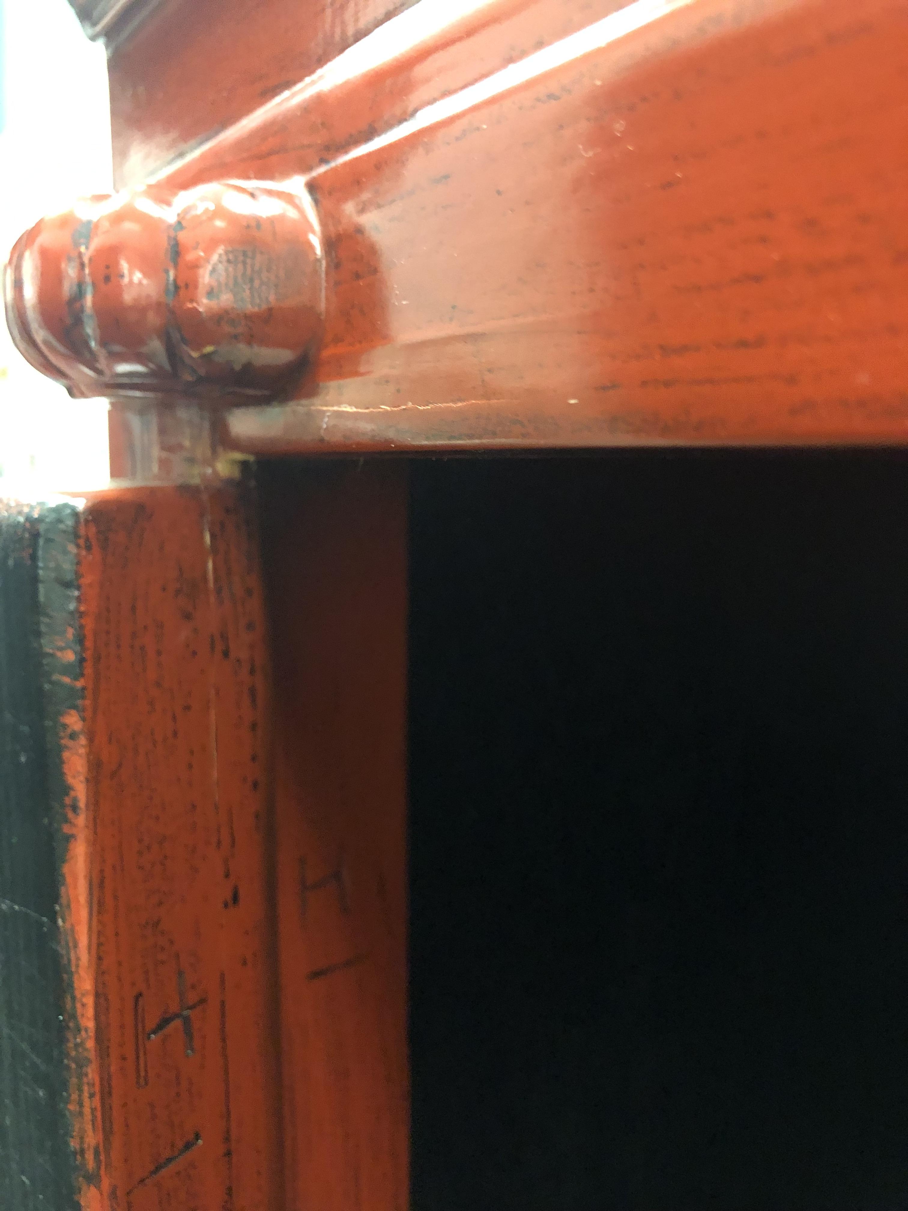 Distinguishing marks beautiful red paint, brass hardware