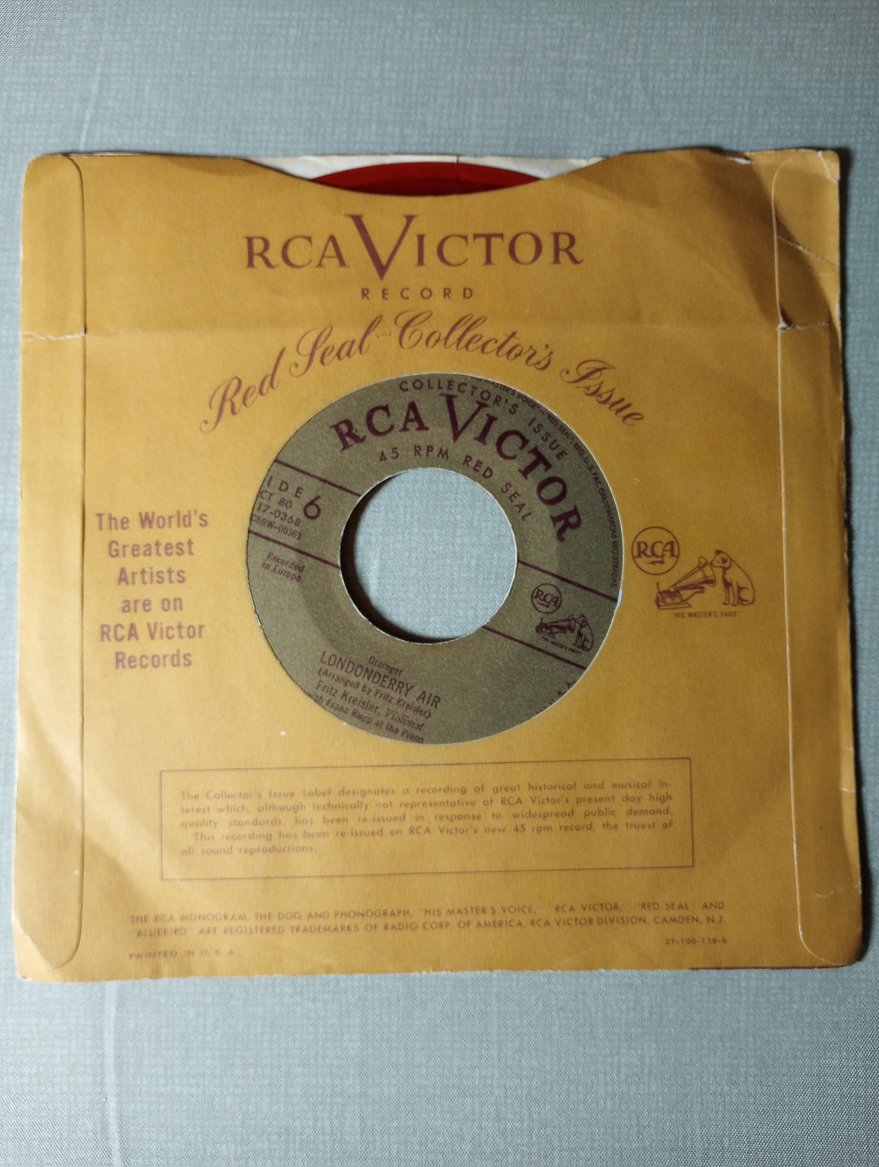 RCA Victor Red Seal Collector’s Issue 45 RPM Record