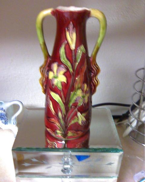 Red vase with flowers