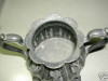 It has some designs around the wide lip at the top. It's very tarnished and is also heavier that it looks. It has 4 rows of stamps on the bottom.