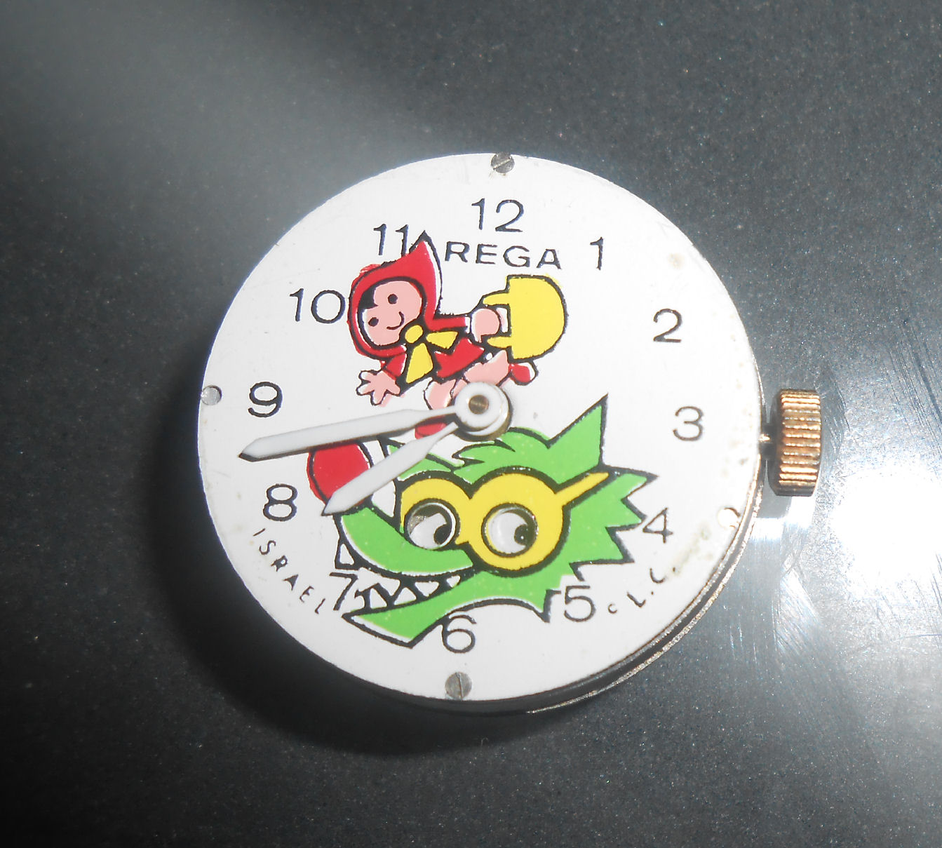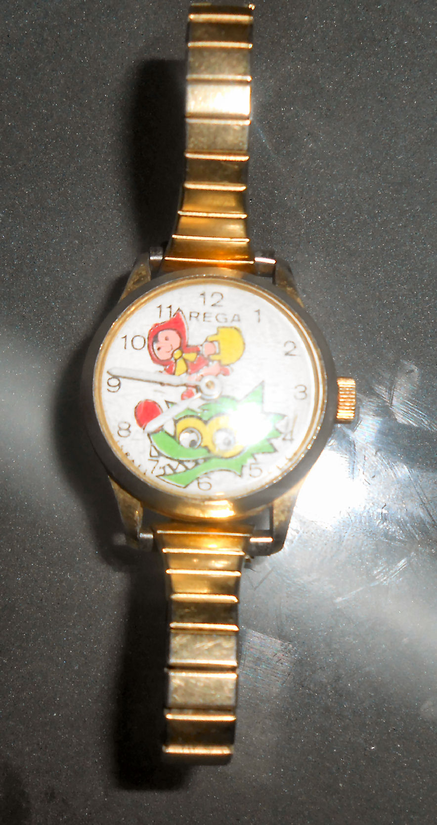 This is a cute watch with Little Red Riding Hood & The Big Bad Wolf. The cutest part is the wolfs eyes move side to side as the seconds tick!!