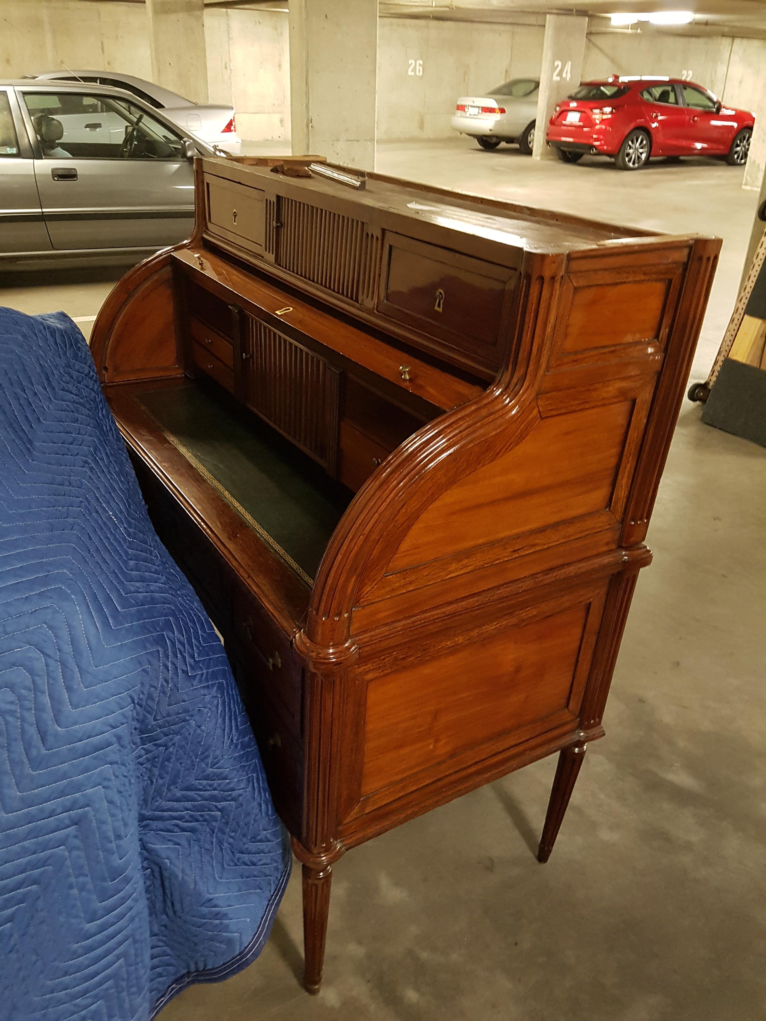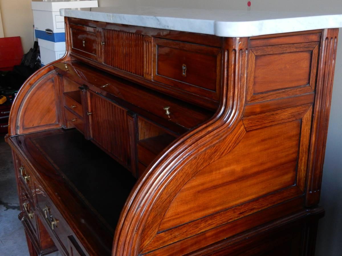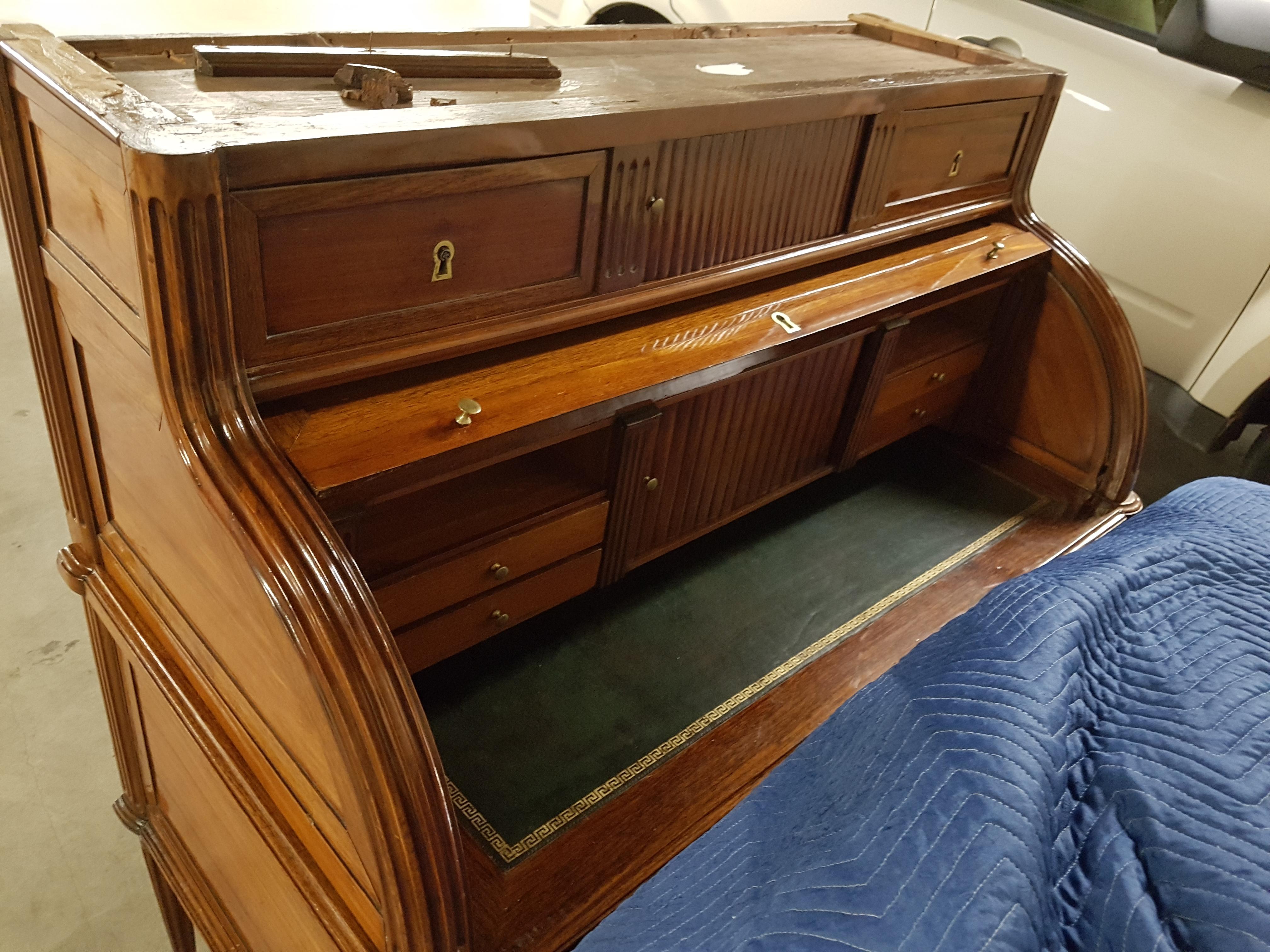 I just purchased a cylinder roll top desk which I find quite unique. They say it was from the Regency period (not even sure if that is a correct classification). I know it is old because all the drawers are dovetailed, there are roller side doors that are held together with a cloth material, and the top settles onto the desk held in place by dowels.