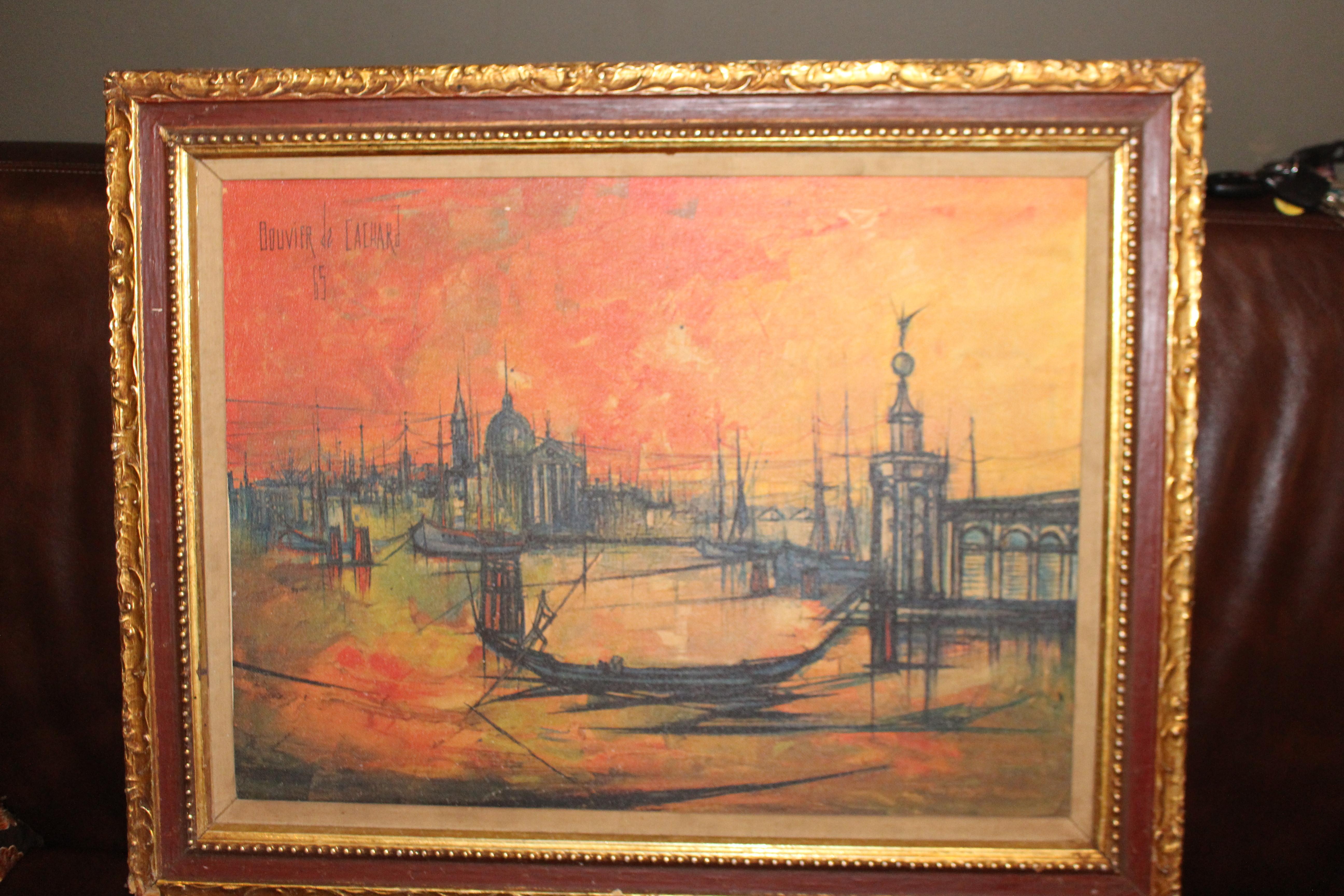 This is a Regis de Bouvier De Cachard Venice at Sunset Painting. It is on canvas and due to age the canvas has some small holes in it. It is signed in the corner. I am trying to find out any information on this, and if it is a original.It is 24" W x 18" L. Thanks.
