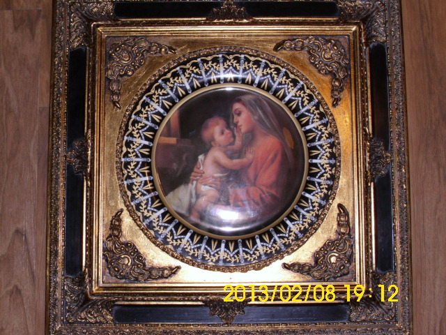 The picture depicts Mary and Child / religious imagery / religious iconography.