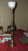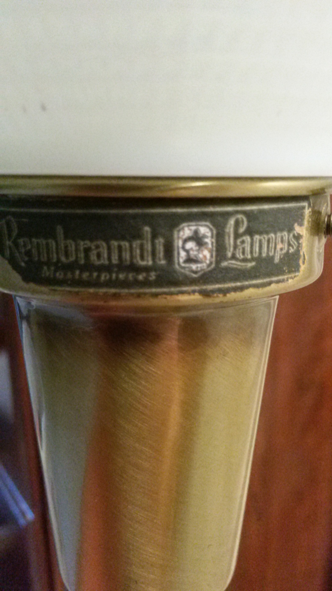 Rembrandt masterpieces lamp is 38 inches tall with a switch on the square base and a second switch at the top. The bottom half of the column is wood.. it has a quilted milk glass shade. I'm looking for a price I haven't seen any with wood on it. Under the lamp has a stamp of "955" possibly the model number
