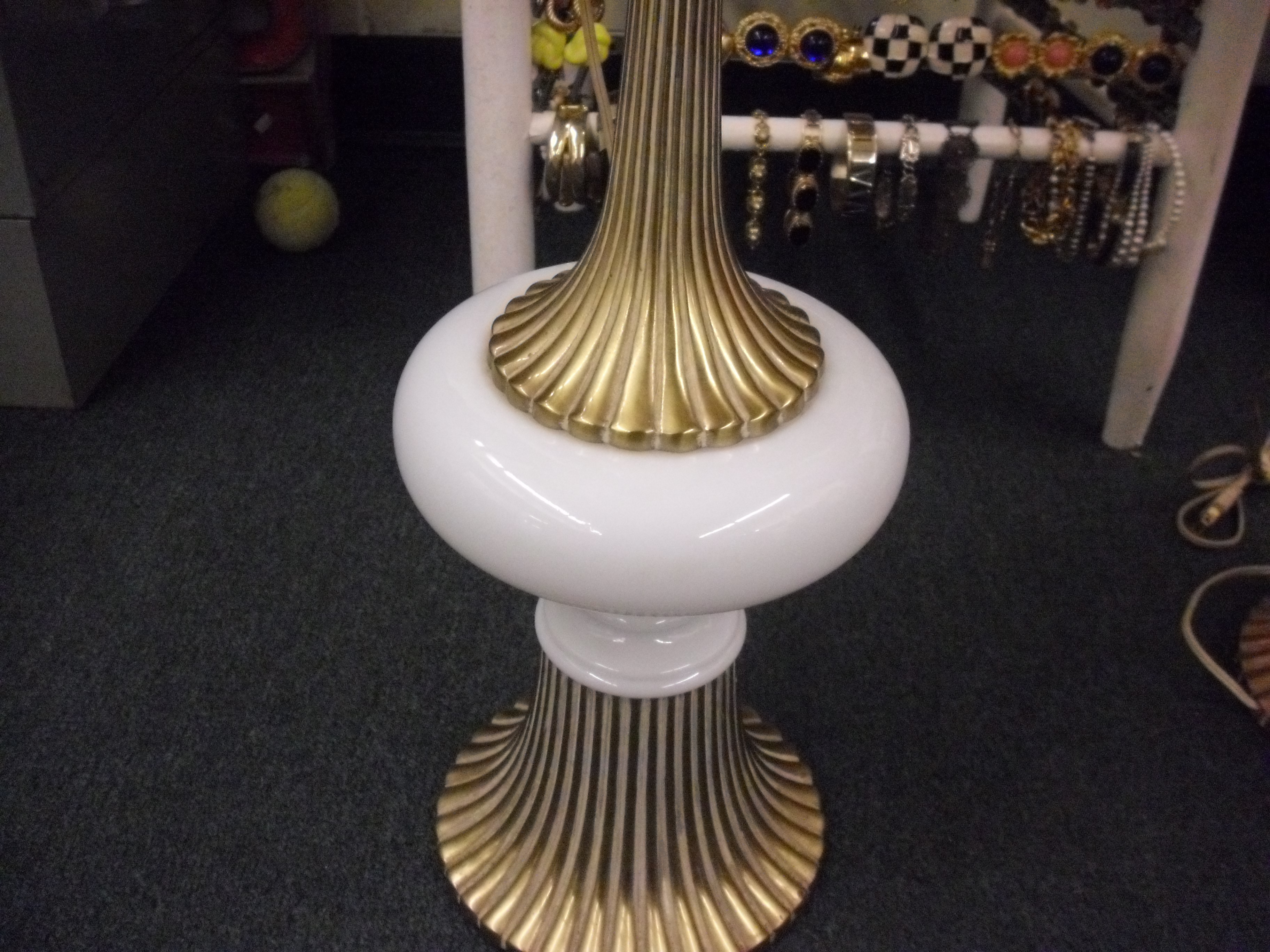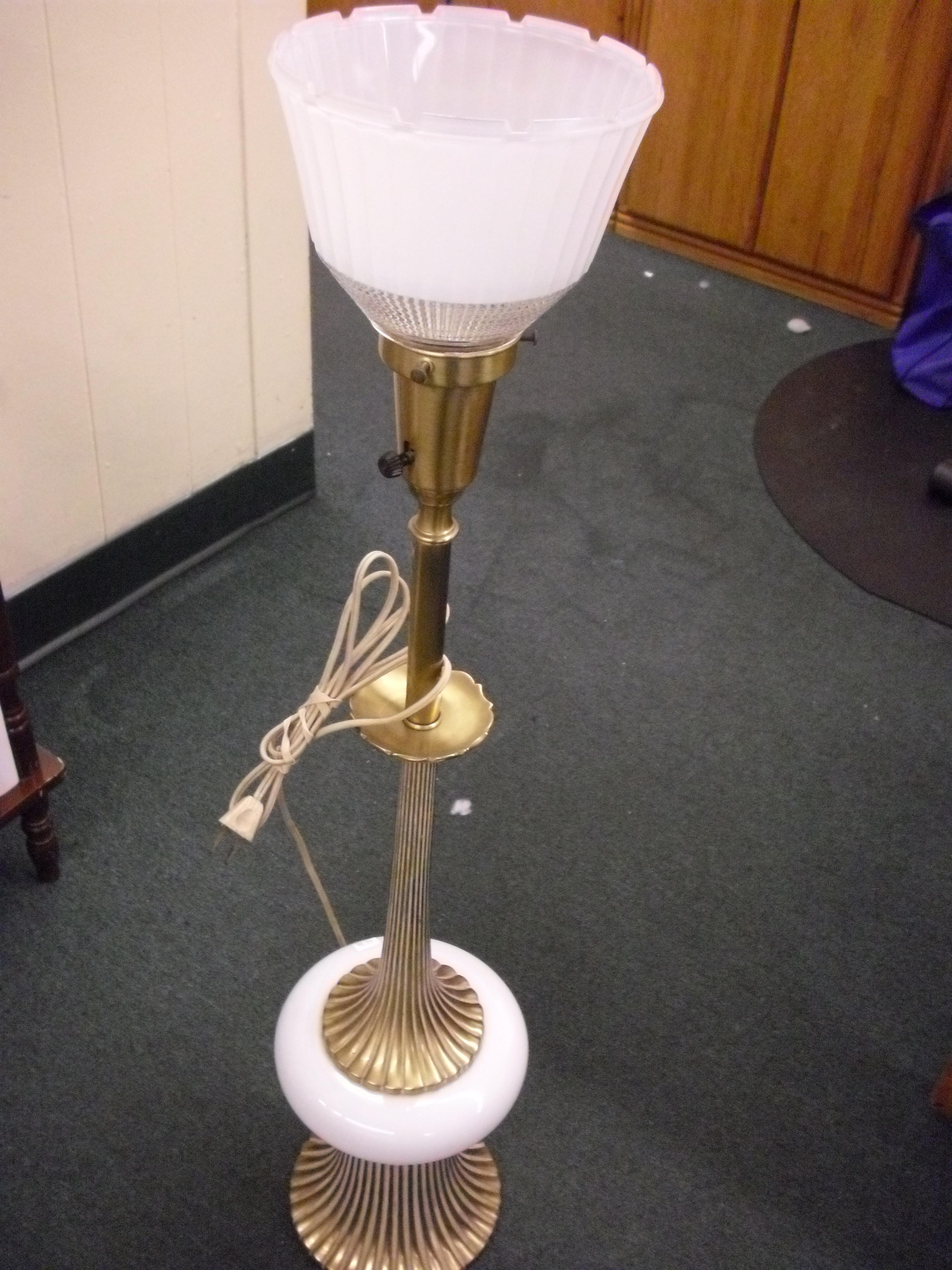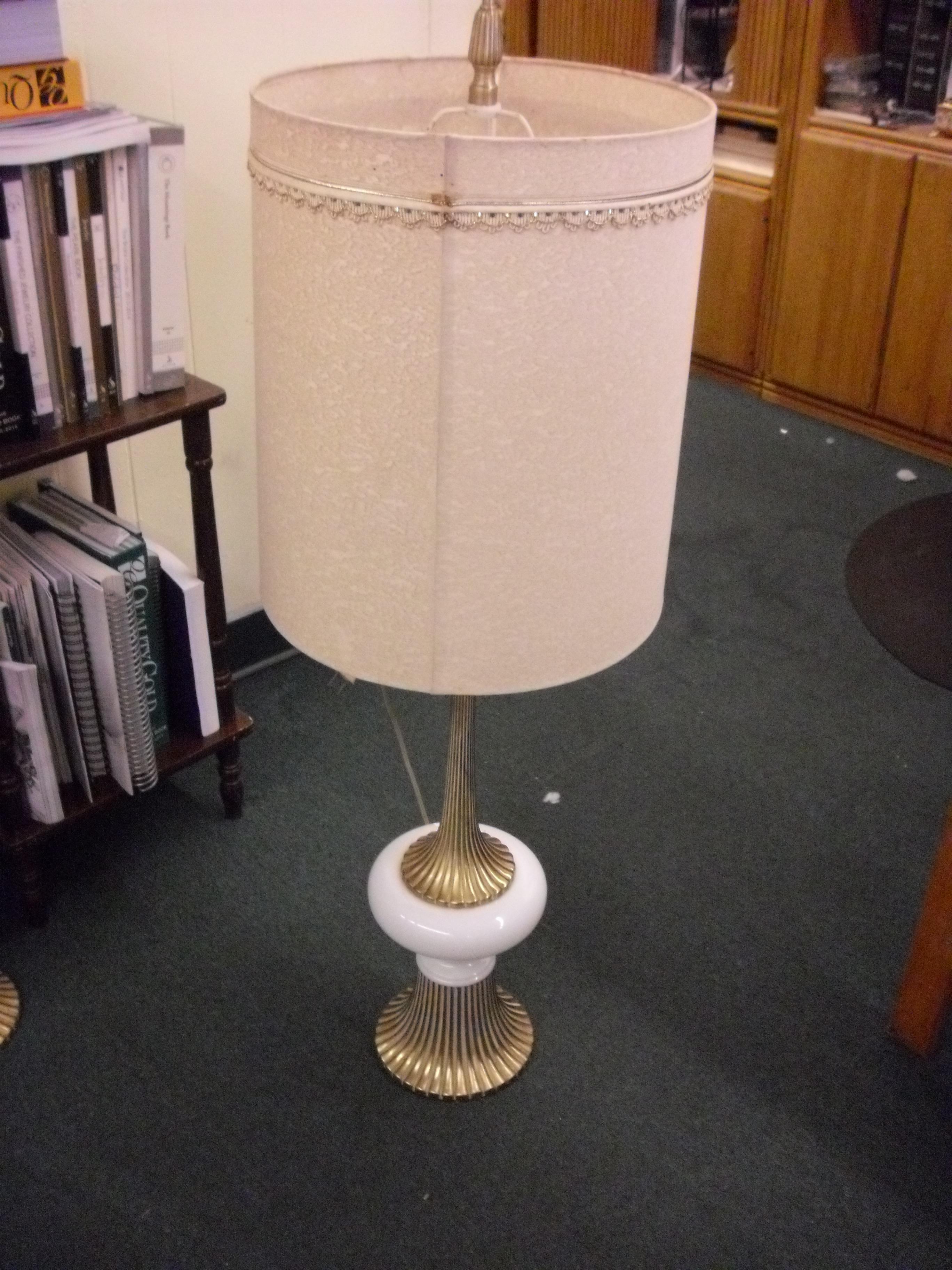 This is a pair of REMBRANDT lamps. They are marked with the original shade and in very good condition. They appear to be brass and are 3 foot six inches tall measuring from the floor to the top of the fennell. There is a white glass "genie"bowl. I would greatly appreciate any info. Thanks so much.