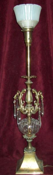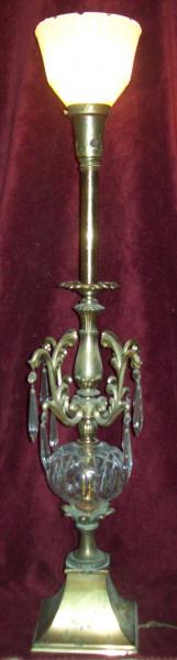 These lamps were purchased in central Illinois antique shop for $40.00 the pair. The lamp shades are thought to be original. There is switches on the base and just below the shade. No prizms came with them we purchased them seperately. I would love to learn more about these lamps and the poss. value.