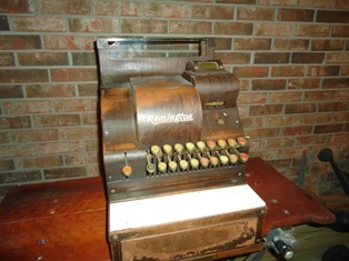 Plate on front "Remington Cash Register Co" lLion NY I did some research, Remington stopped production of Cash Registers and sewing machines @ 1931... sold to " National Cash Register"