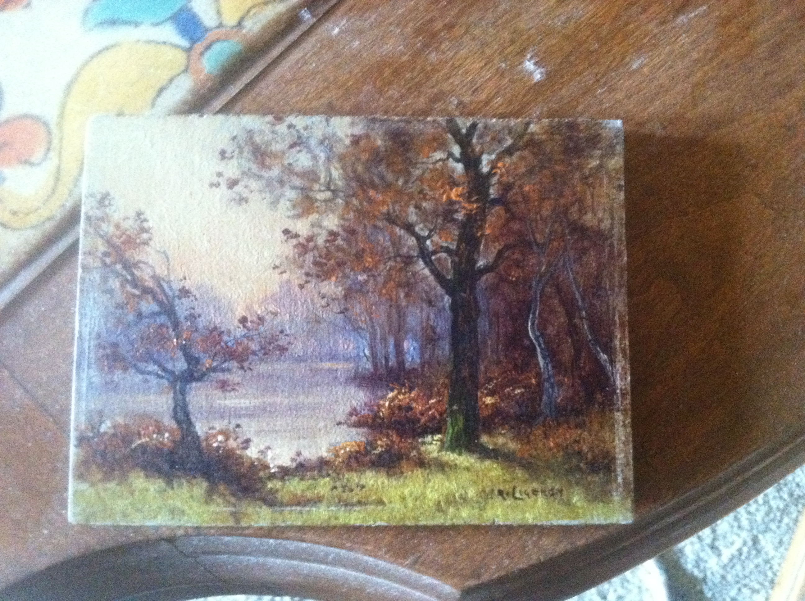 This is a Rene Ligerman oil painting on wood. This painting was bought in France during WWI.