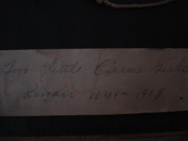 its a renoir print with hand scription of the years of the picture, its Little Circus Girls, the inscription on the back is done in pencil.