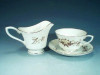 Dinner plate, salad plater, bread plate, cup and saucer, bowl and saucer, sugar bowl, creamer, dessert plate.
