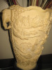 This horse figurine is 10" tall by 11" wide. It is unpainted. On the base I think it says Mexico. The eyes look really old maybe glass?