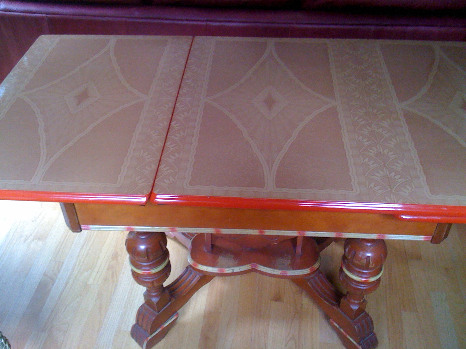 Minimum wear on table top, some wear showing on Wooden Pedestal.
