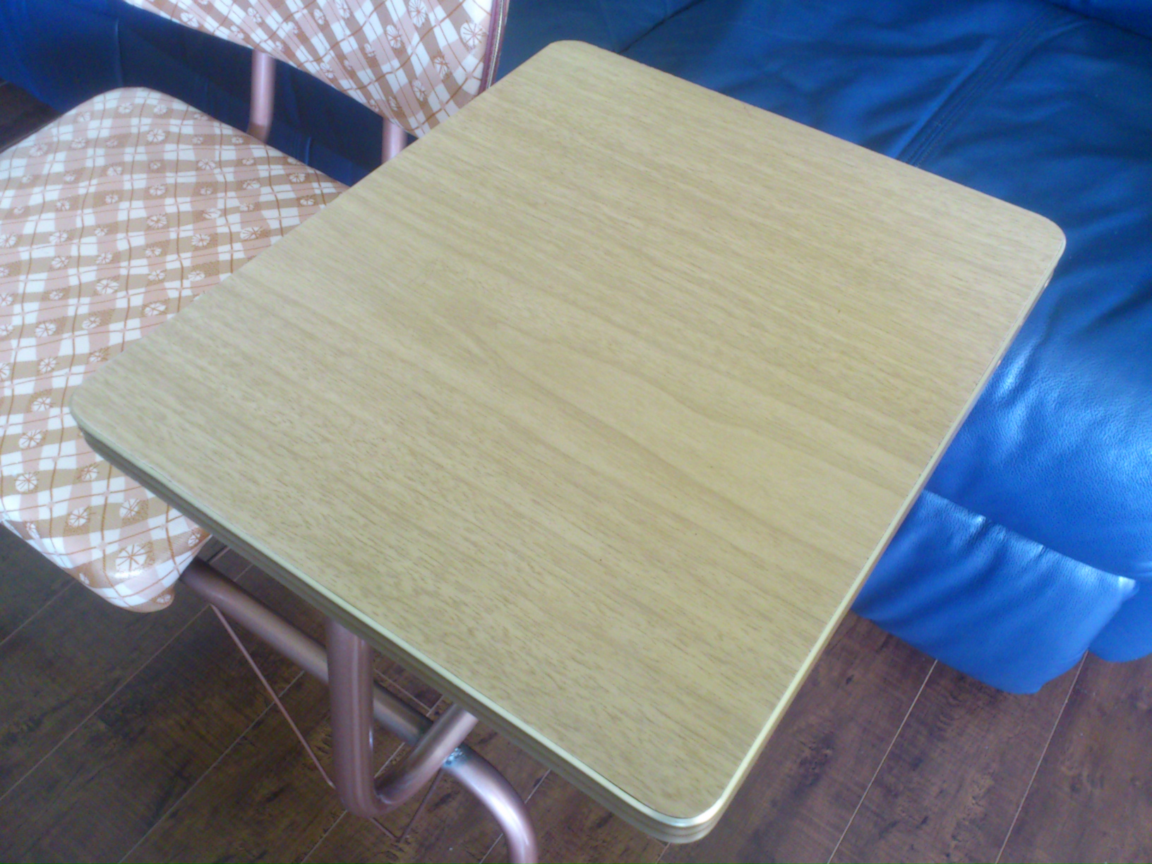 Medium All metal frame. Original vinyl fabric. Harwood block surface with metal accent.