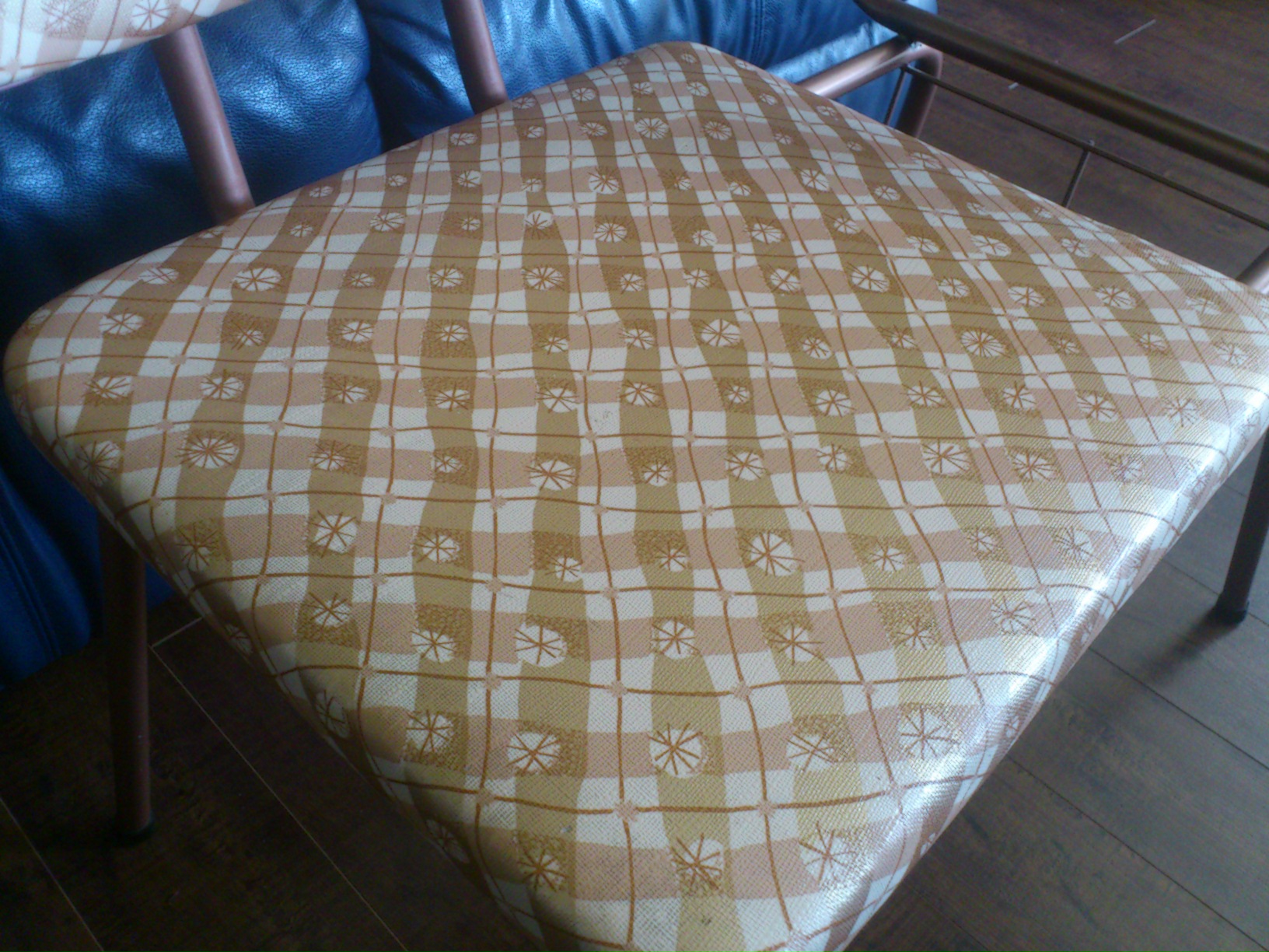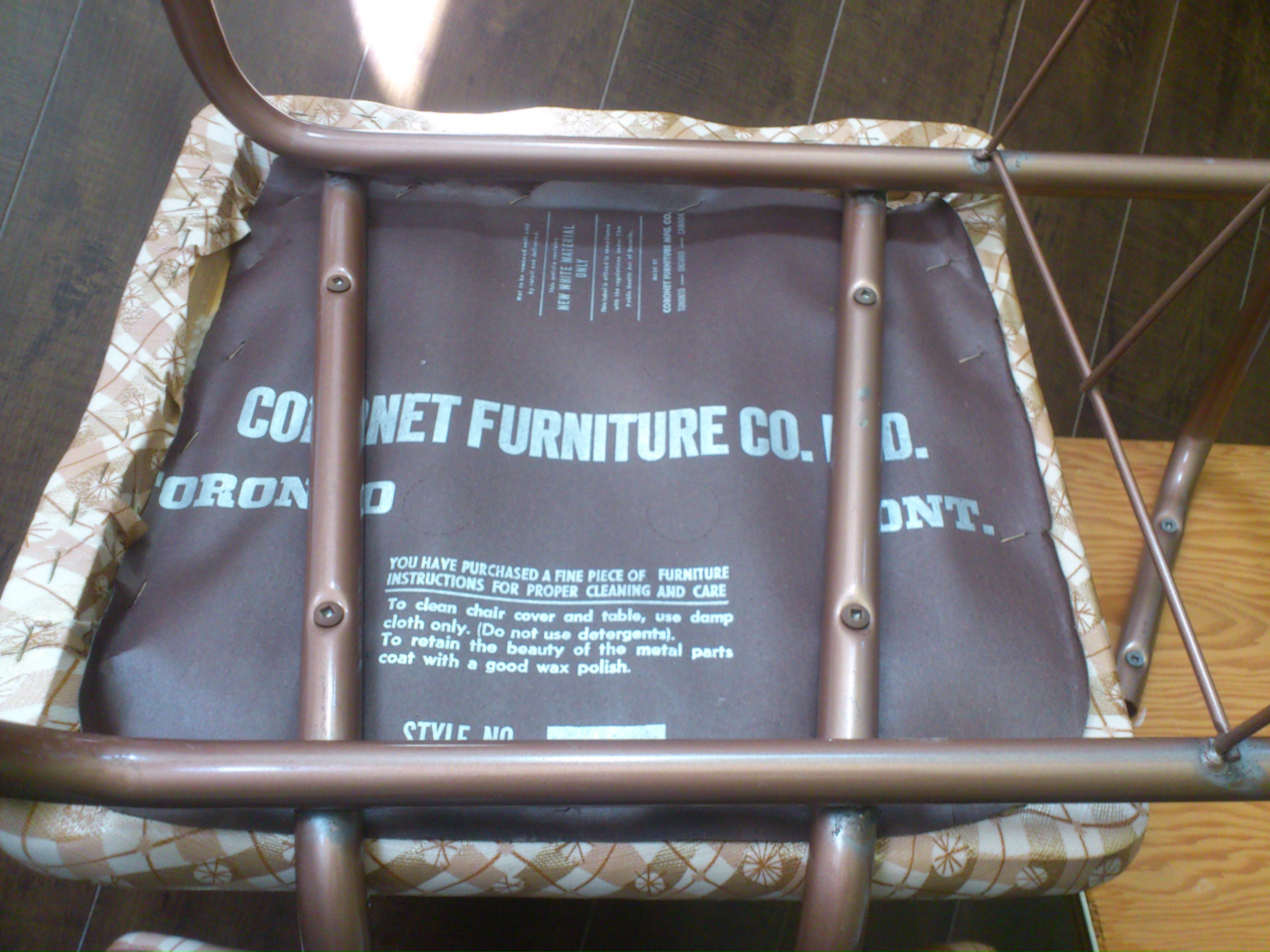 Here is a retro mid-century classroom chair made by Coronet Furniture Toronto Inc. LTD. It was purchased between 1955-1965 and has been in in a heated dry attic covered by painter’s plastic for over 30 years at my grandparents place. It is in meticulous condition for its age. All original fabric, writers block, and paint. Very little, if any signs of use. No need to refinish or even touch up any of the surfaces. Extensive research, but to no avail in finding other examples or even something close.