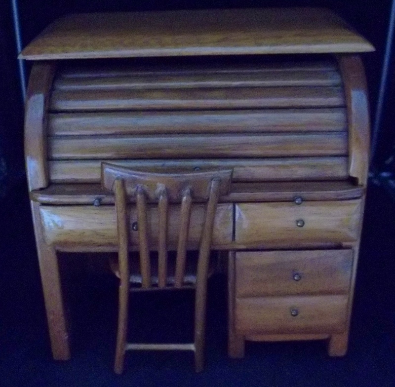 Awhile back I inherited some things and there is this minature wooden rolltop desk with chair musicbox. It has a Reuge tag on the underside along with it it says Beautiful Dreamer which is what it plays and the words Swiss Musical Movement. Have searched high and low trying to get some idea of how old and possible value. Can anyone help please?