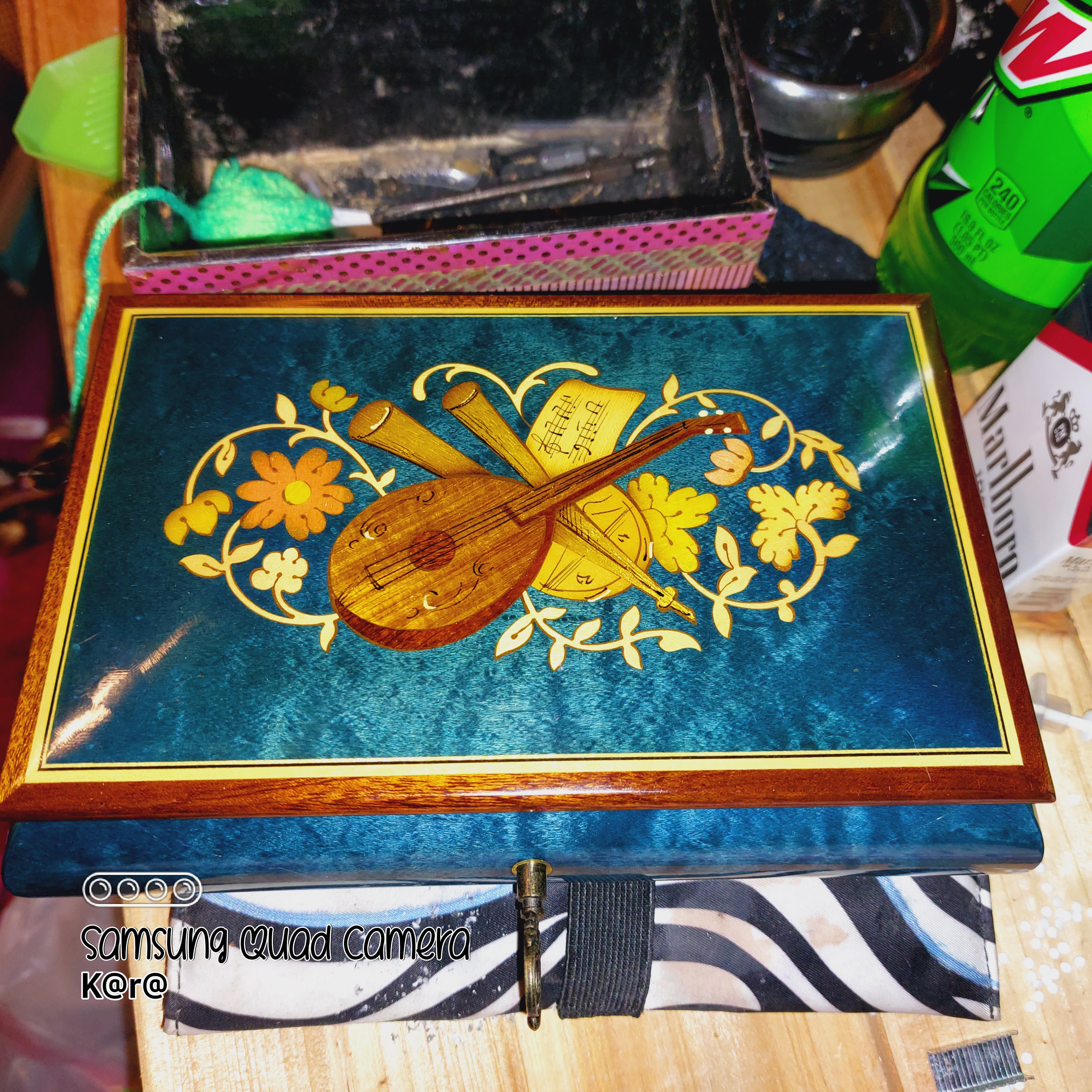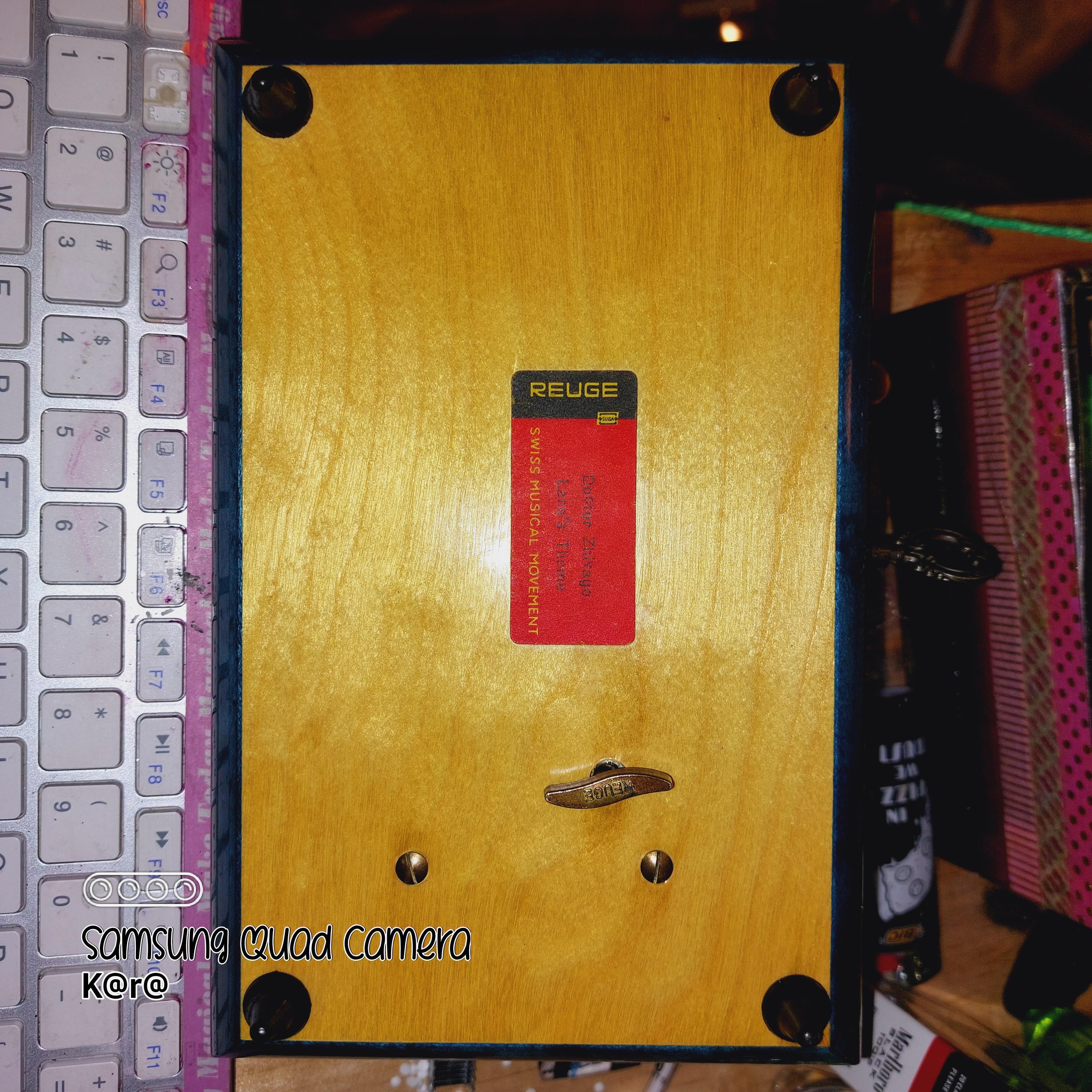 I have a Reuge musical jewelry box that I was hoping to get some more information about, such as how old it may be, if it is genuine, and the value. It is what I would describe as a dark blue, has an image of some stringed instruments on the top. The inside is covered in a soft red material, and in the right side, sits the musical component. On the bottom of the box, it says " REUGE Doctor Zhivago Lara's Theme SWISS MUSICAL MOVEMENT." Then there is a little wind up that protrudes from the underside, that also is marked "REUGE"