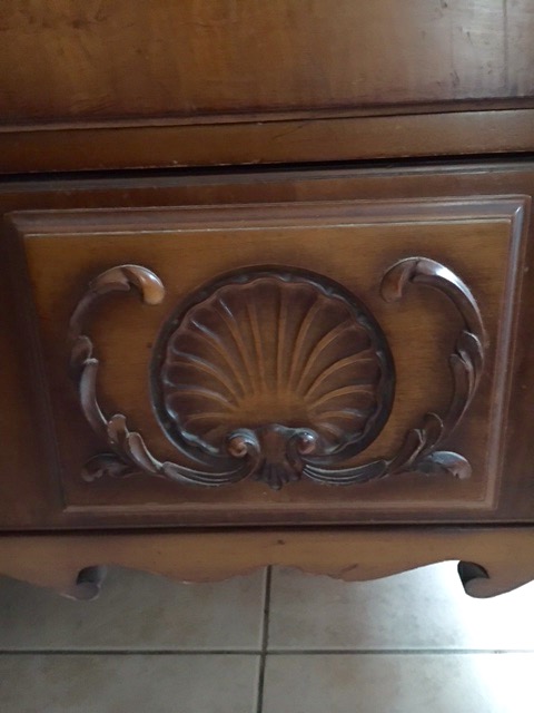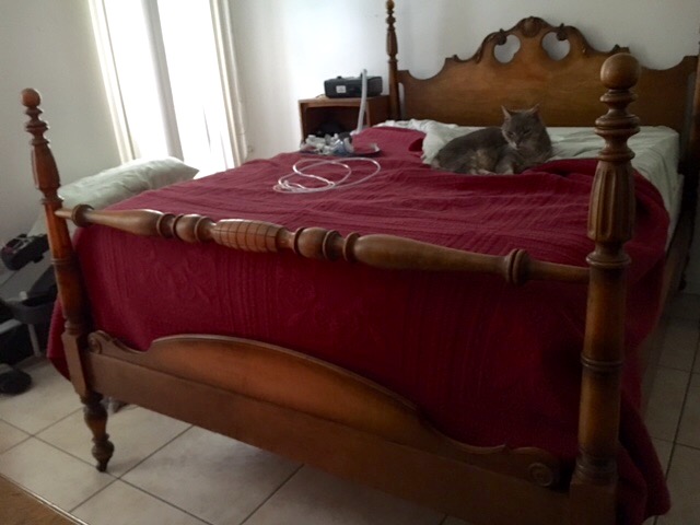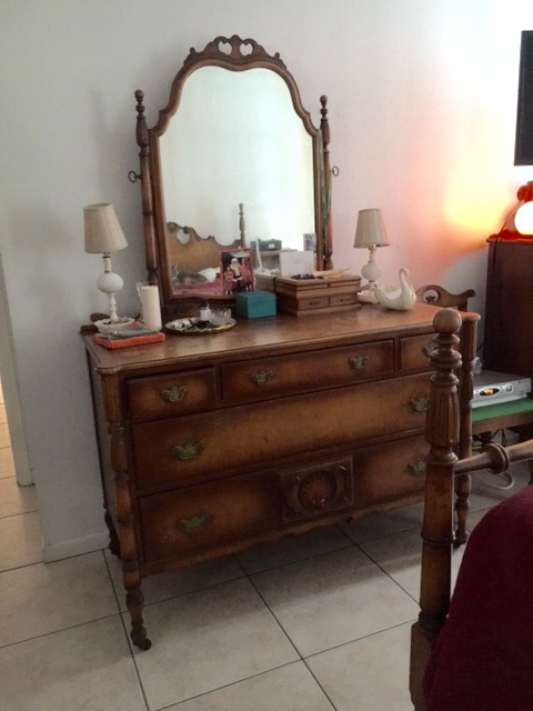 Full bed, dressing bench, straight chair, bedside table, tall dresser, full mirrored dresser. Nothing is broken, This is made from Tiger maple. There have only been 2 owners. I am NOT interested in selling.