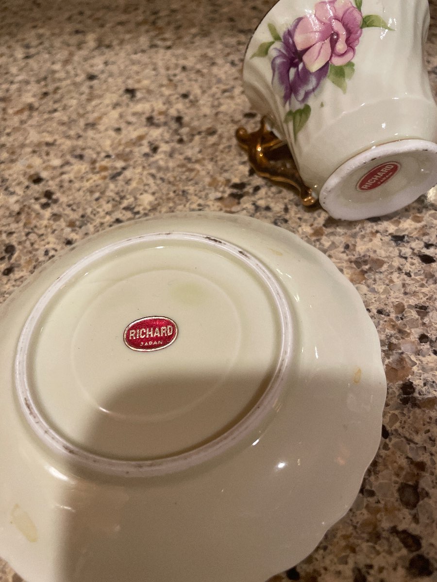 Maker Identification: The set is marked "RICHARD JAPAN" on the bottom, indicating it was produced by Richard, a porcelain manufacturer known for its decorative tableware. Founded in the early 20th century, Richard Japan was recognized for its quality craftsmanship and beautiful designs, making their pieces collectible among enthusiasts of fine china.