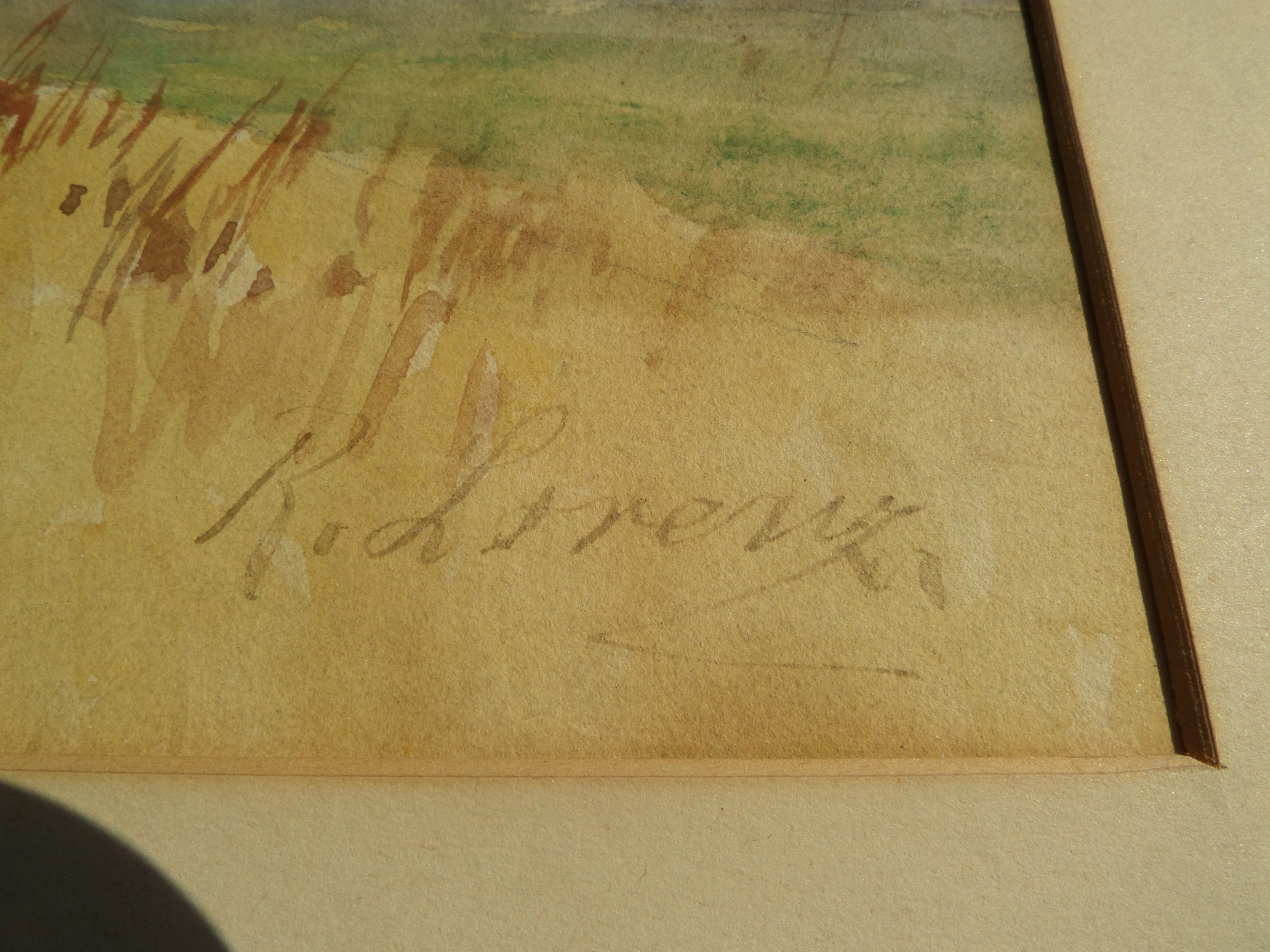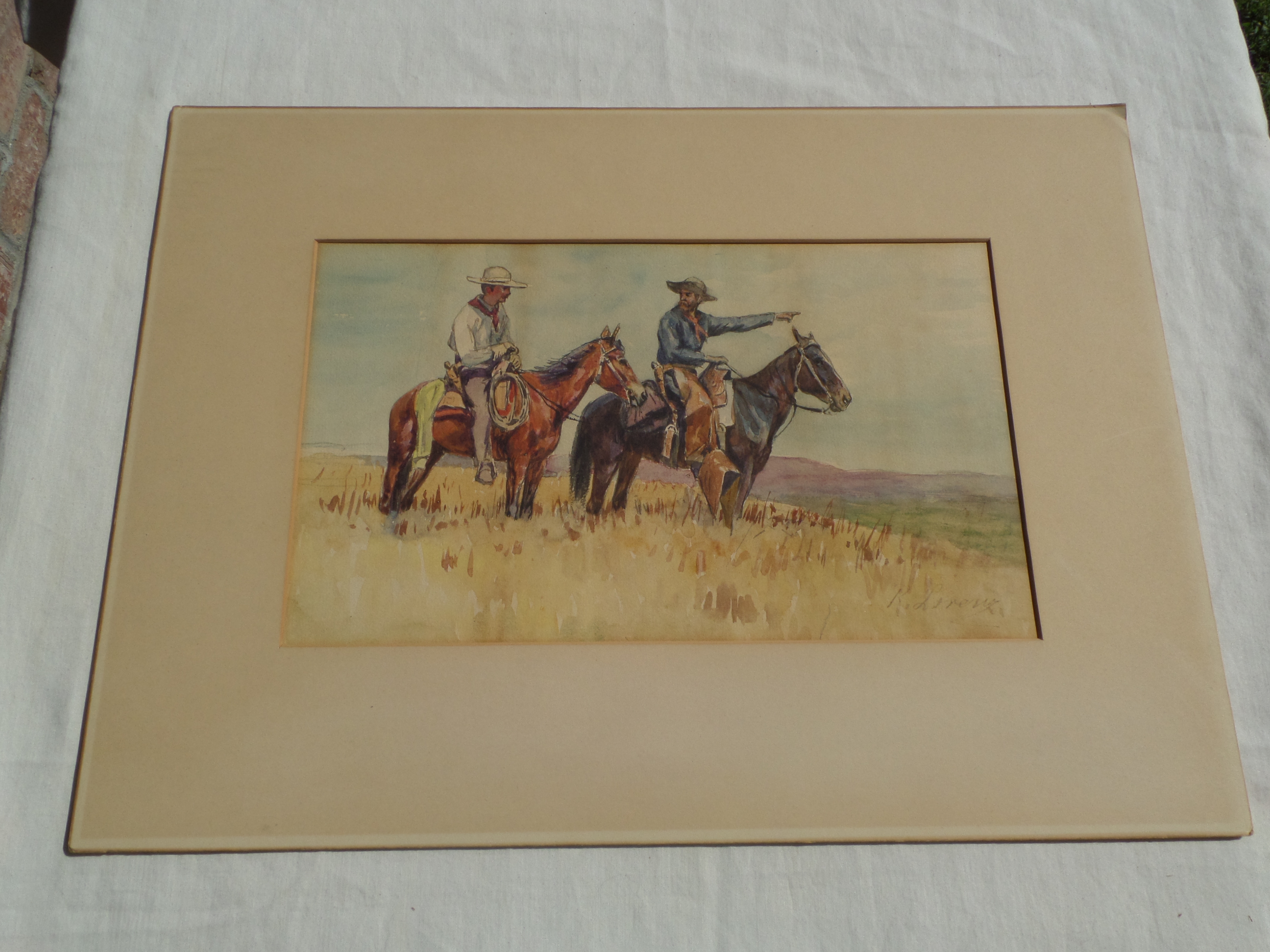 This is a watercolor painting I acquired from an estate sale and have no history or paperwork on it. It is signed "Richard Lorenz" but it is in cursive where it looks like he normally prints his name. I think this is because it is watercolor and not oil. I can not find any examples of his work in watercolor. The painting has some water streaks and has been permanently matted to a cardboard backing. The photos were taken in direct sunlight.