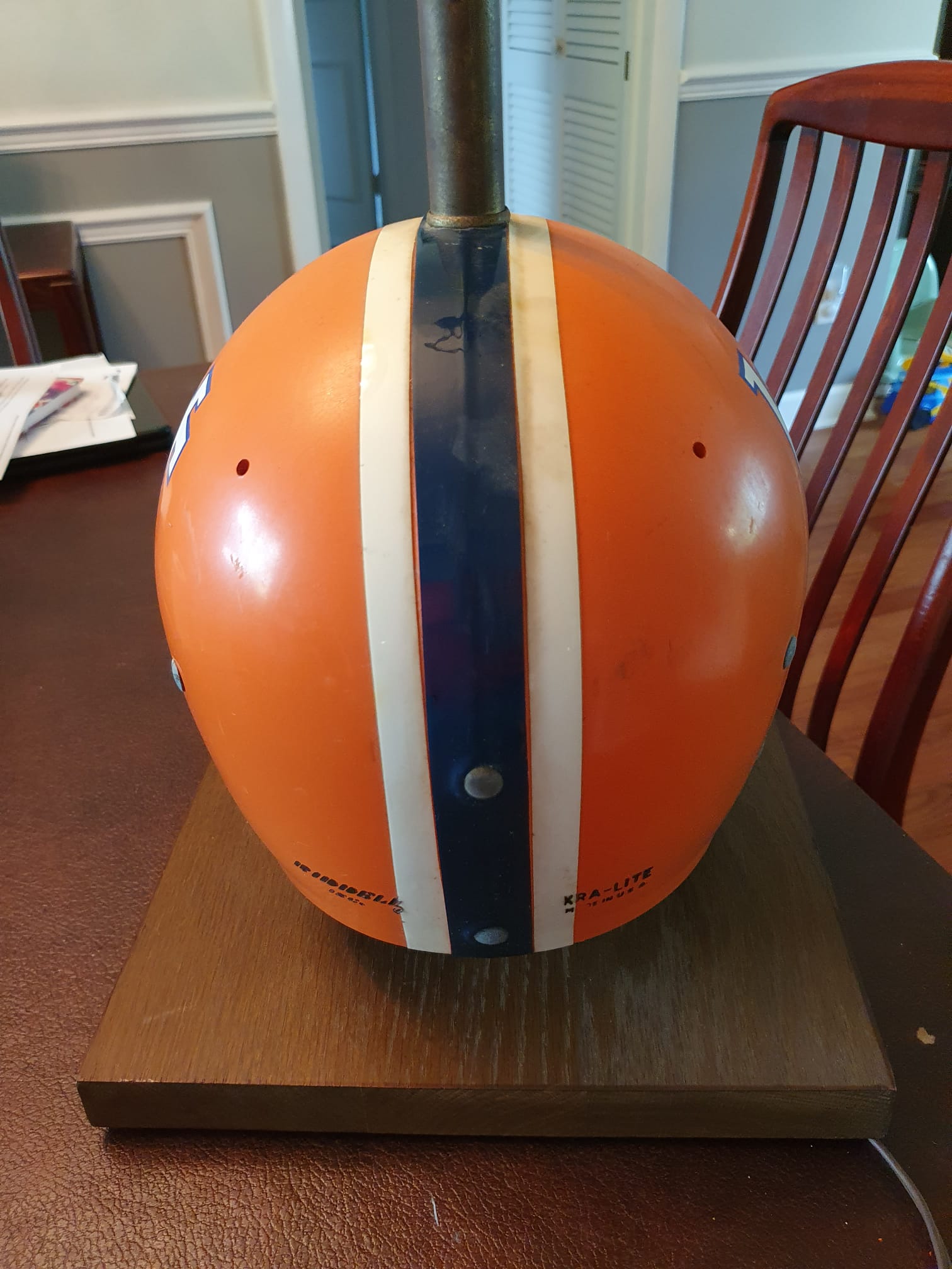 This is a 1972 Riddell Helmet Lamp featuring the Florida Gators per the date written in the bottom of the lamp. Issue number 86,658.