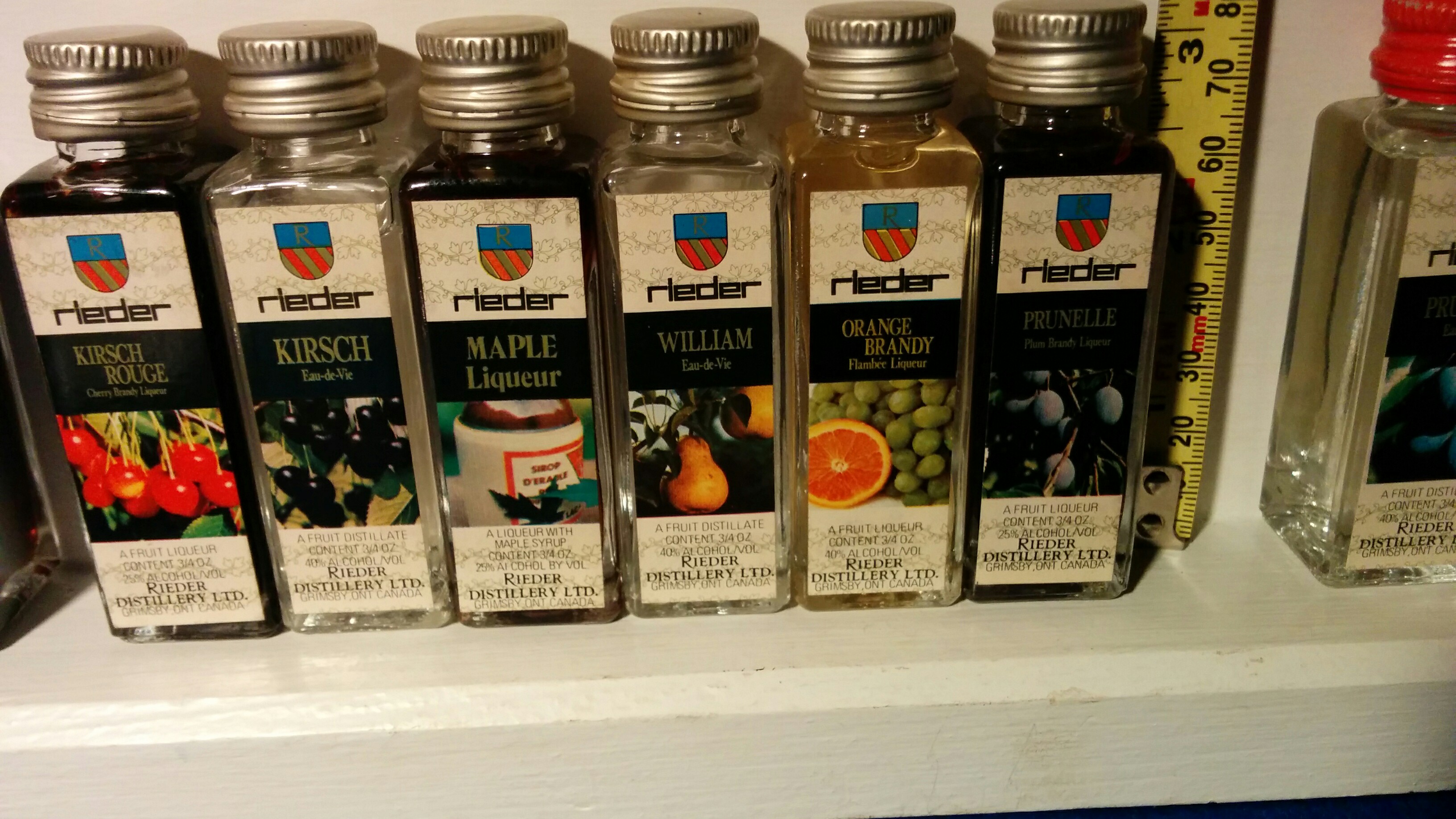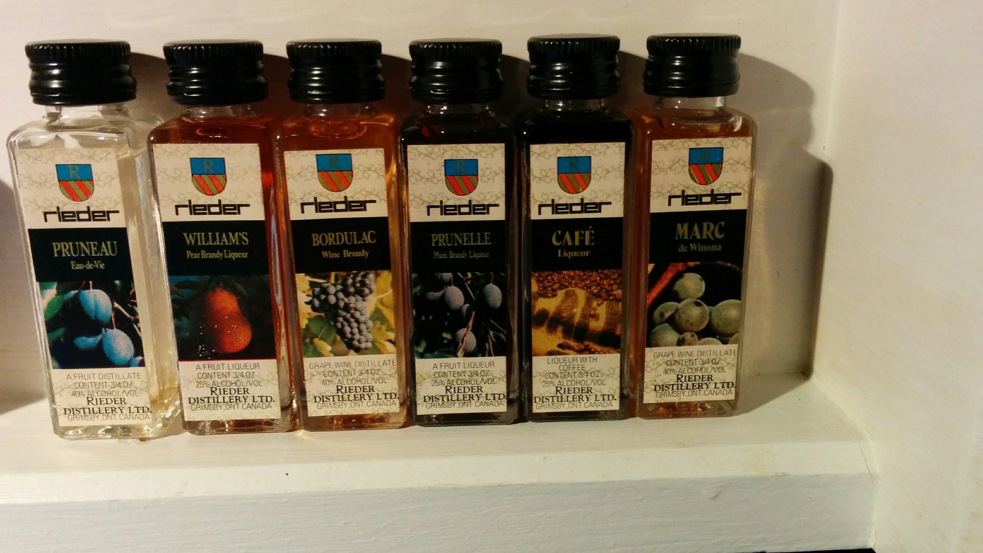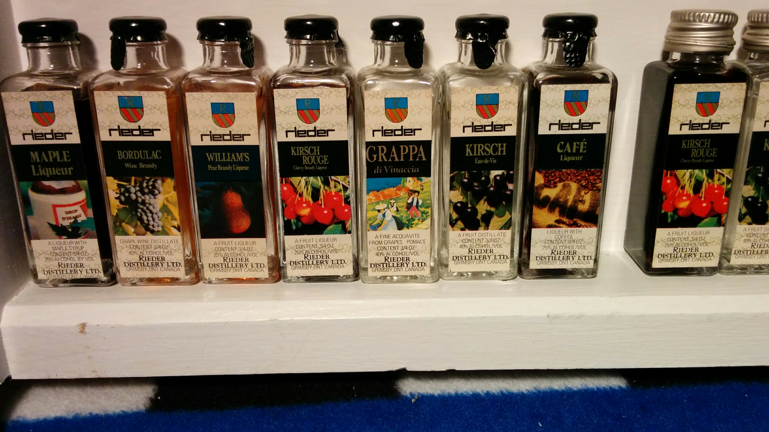 I haven't found much info on this set. Going by the the bottle tops there could be parts of more than one set. They are from Rieder Distillerys, Grimsby, Ontario, Canada. Most likely from the 1970's as that was when the rest of of minis were accumulated. Anyone out there with any info? A value would be nice.