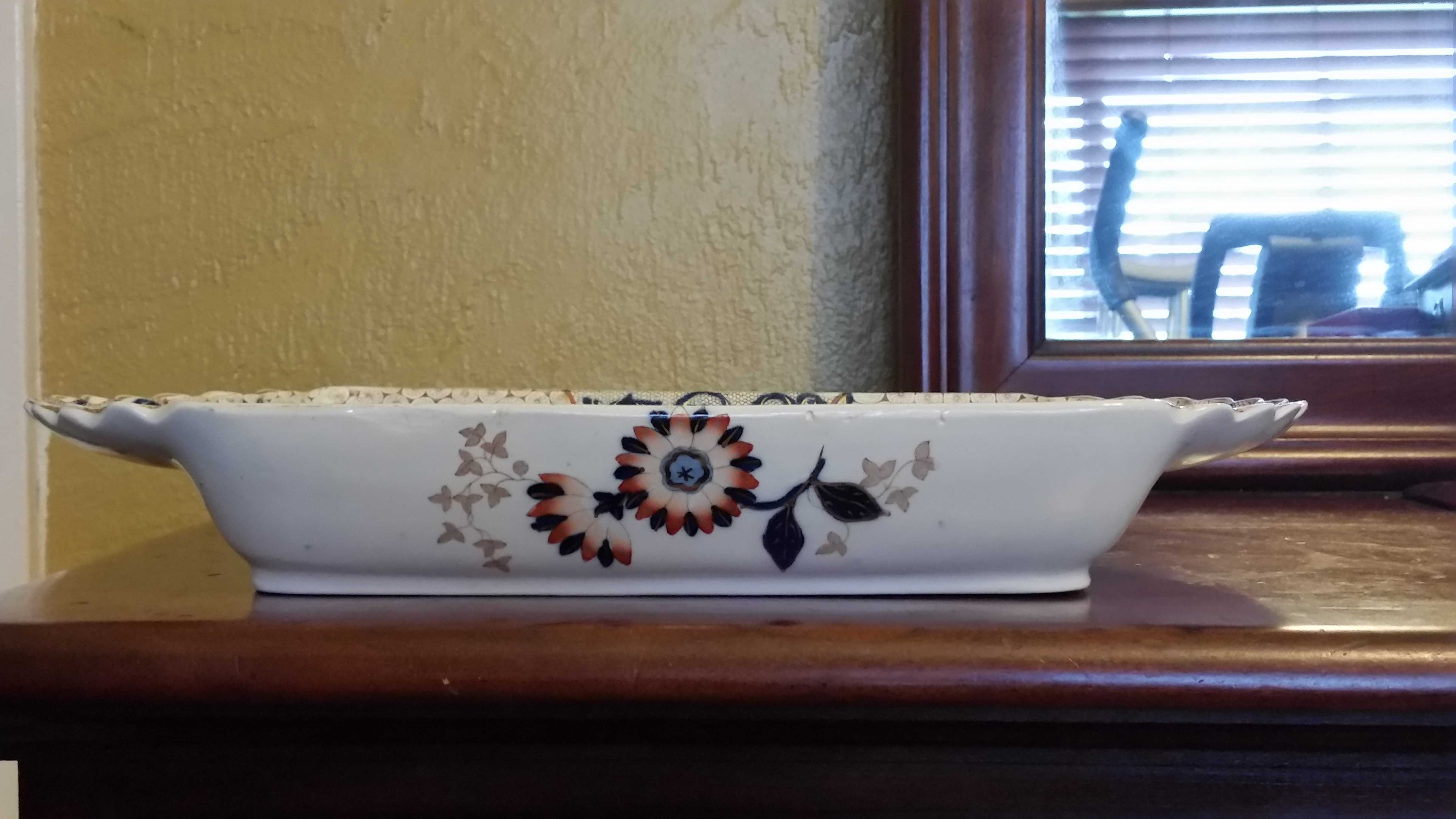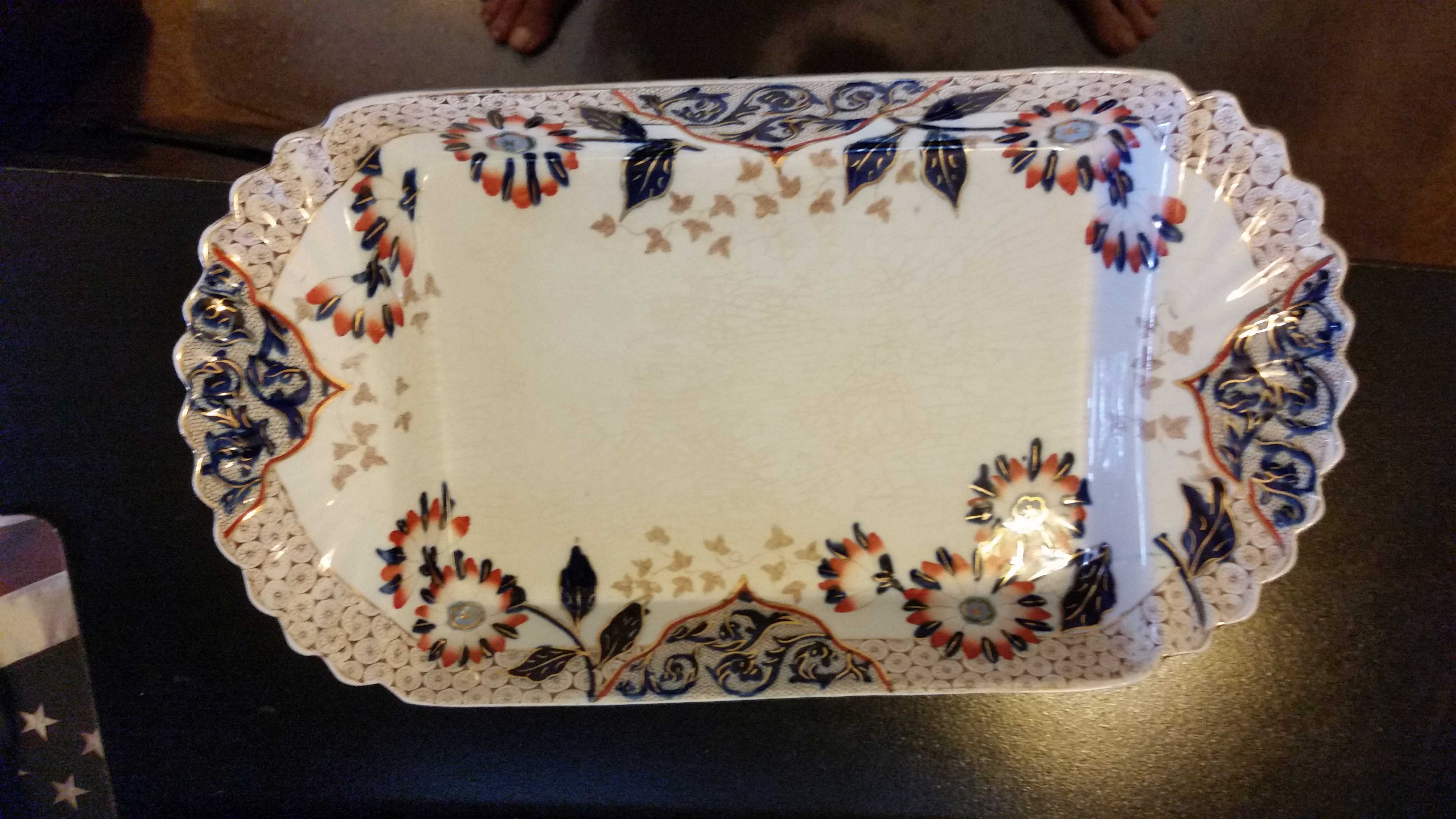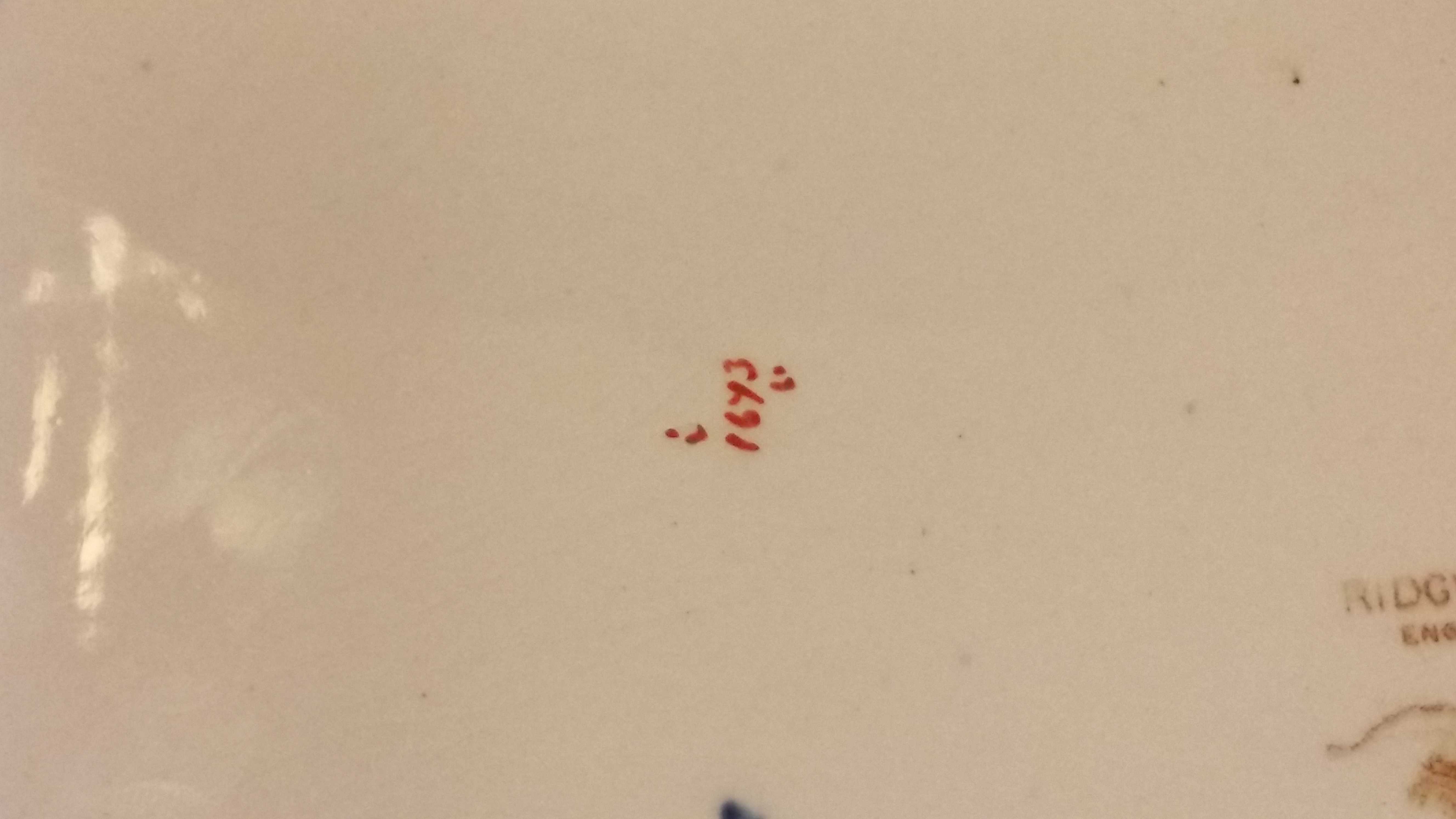 I bought this at a yard sale in Chatham, MA. The seller said that it belonged to her Grandmother so I figure it may have some years on it. From what I can tell it's a pretty flower patterned serving dish from Ridgways England with a few marks on the underside.