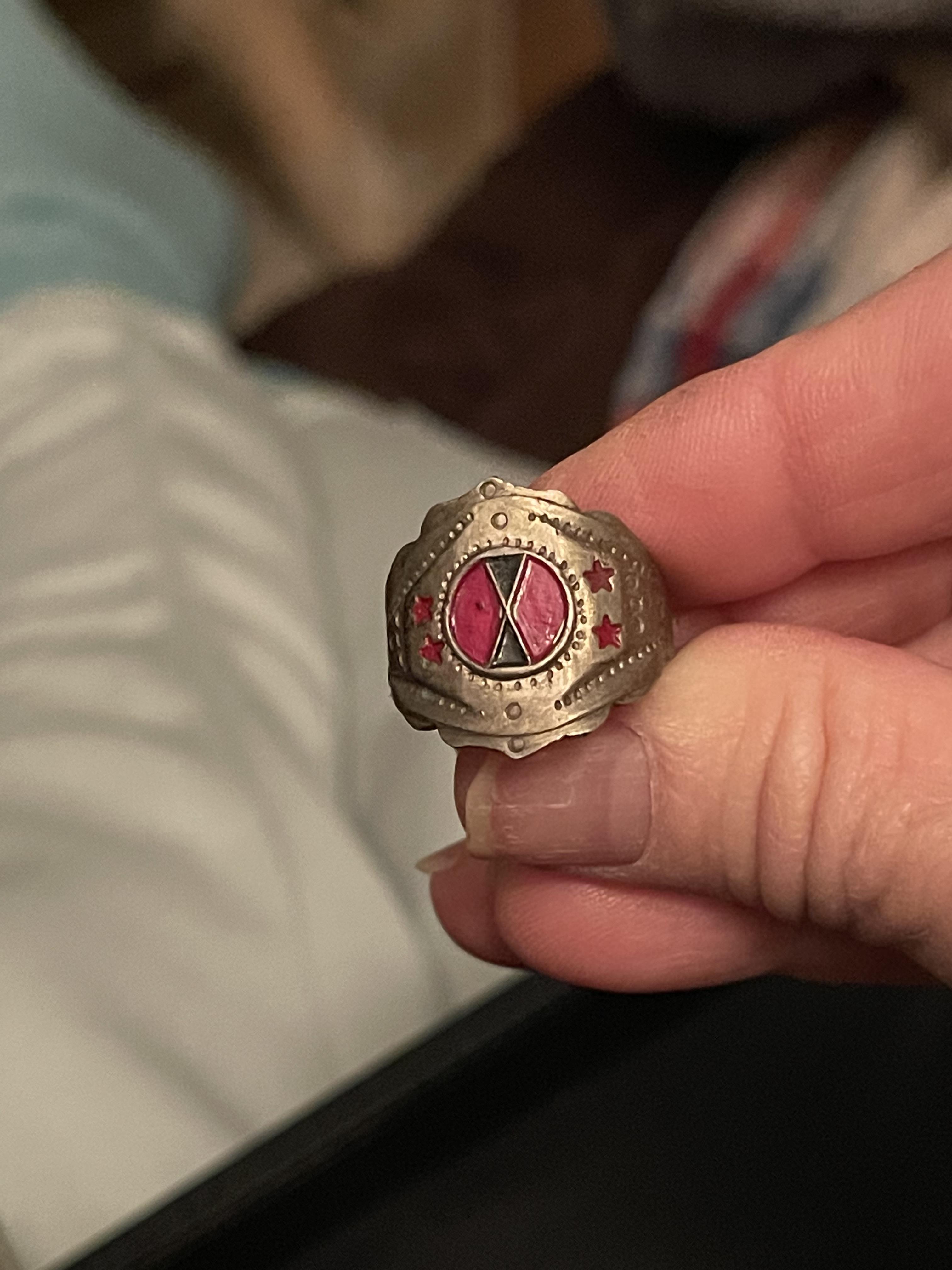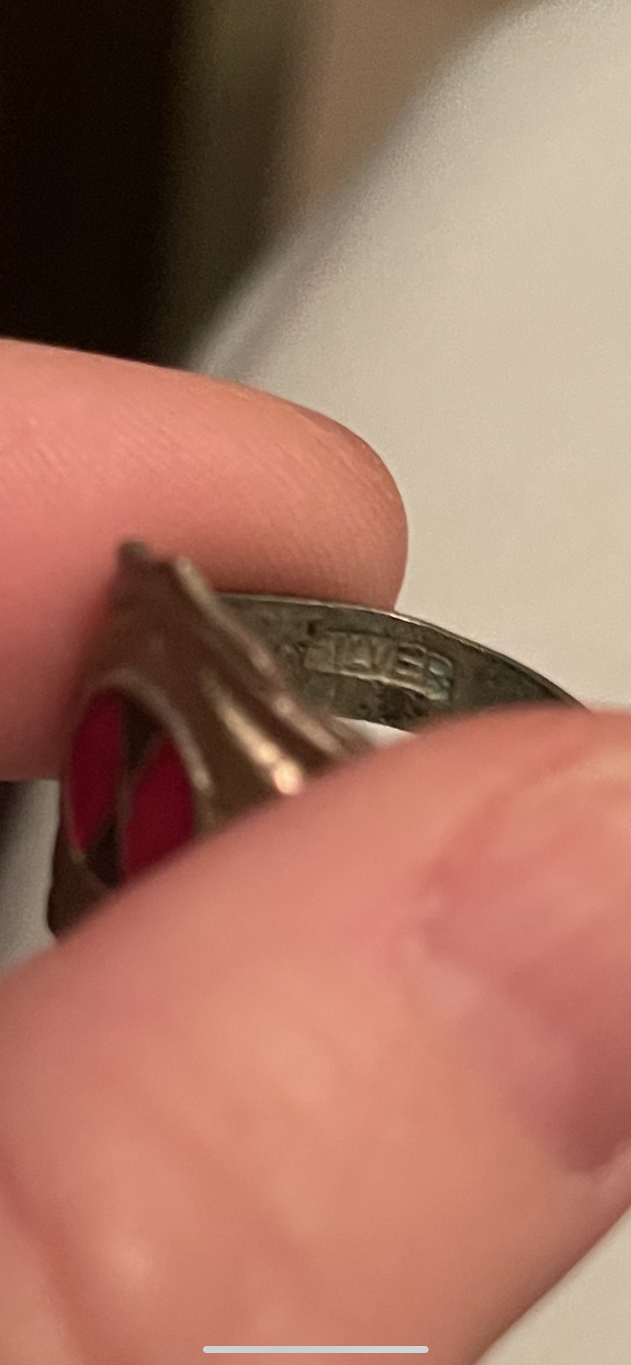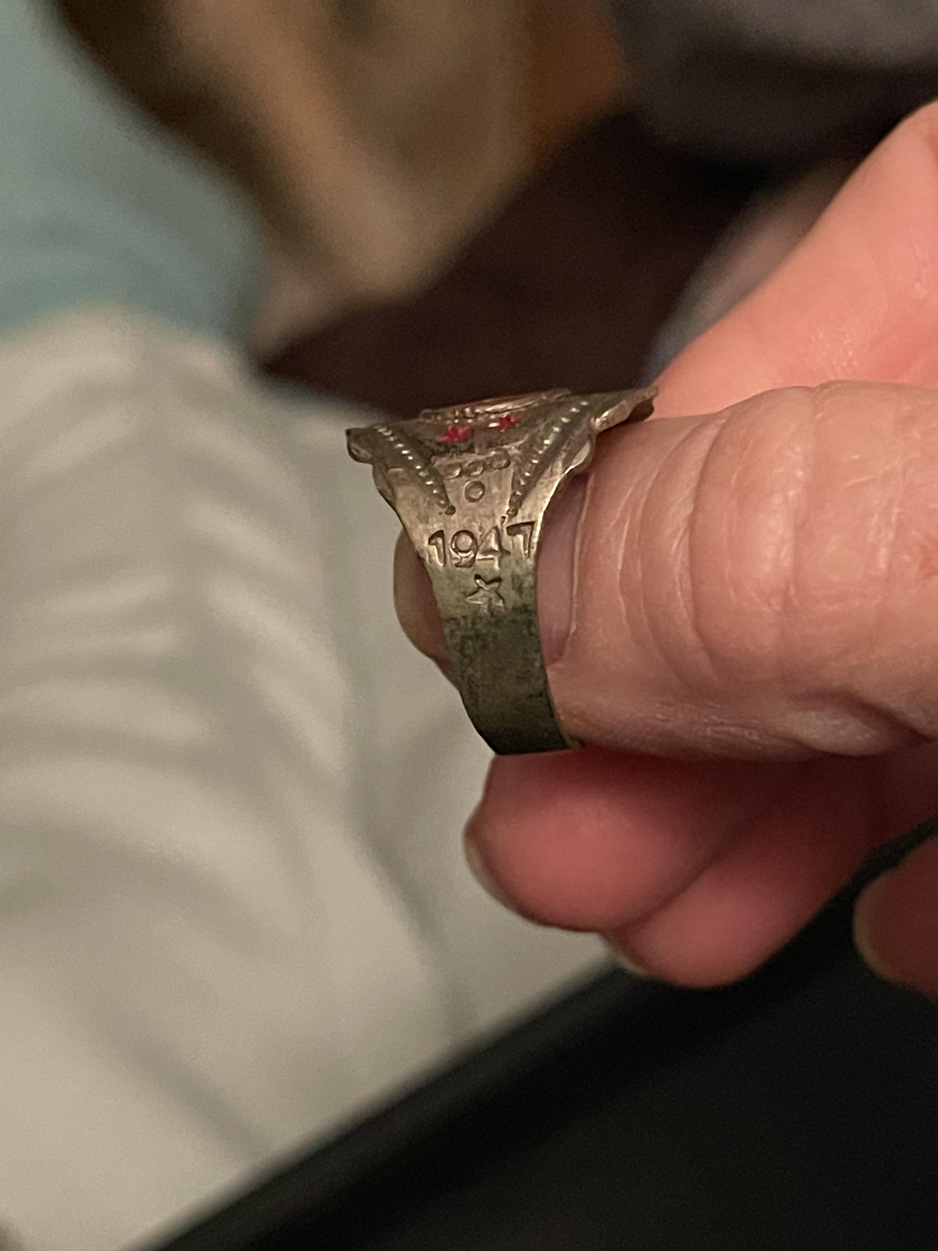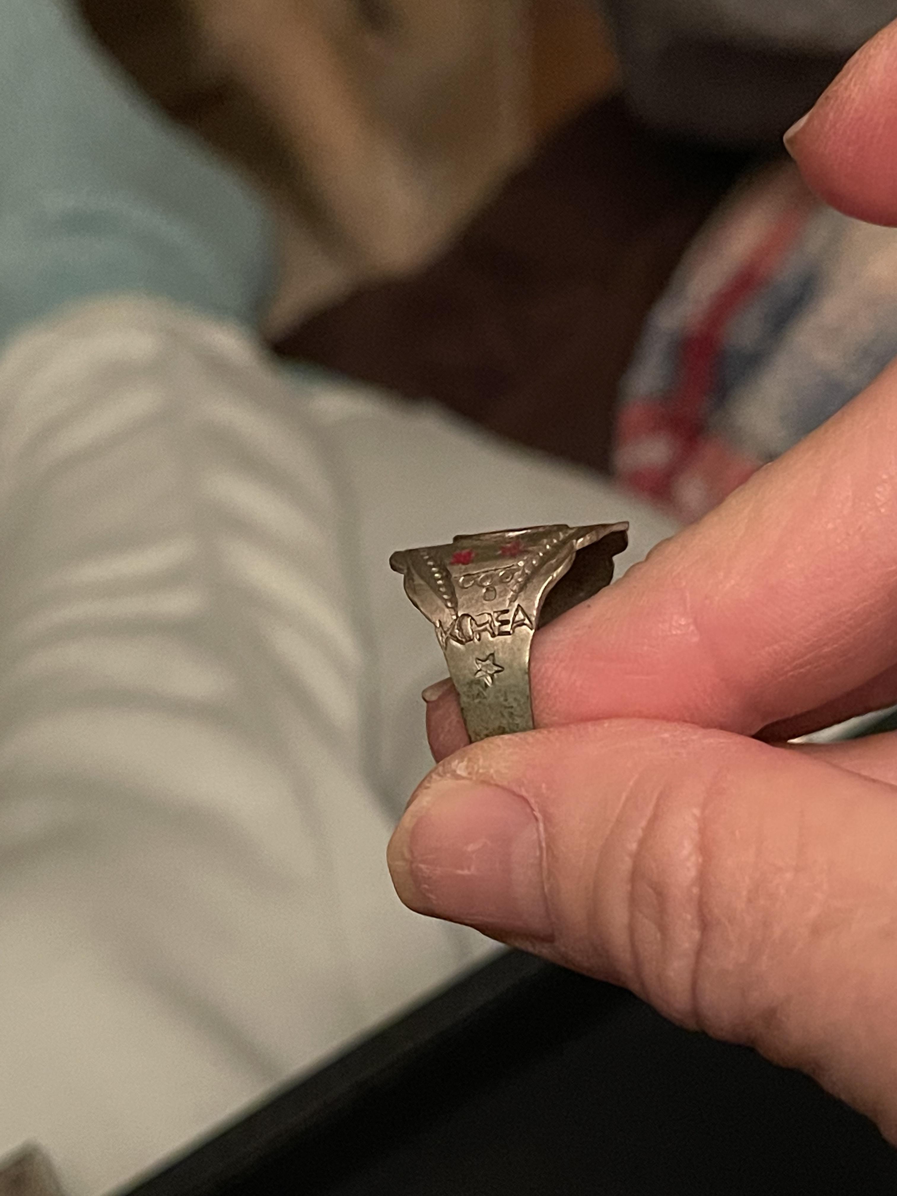 Silver ring with 1947stamp on right side. Korea stamp on left side.