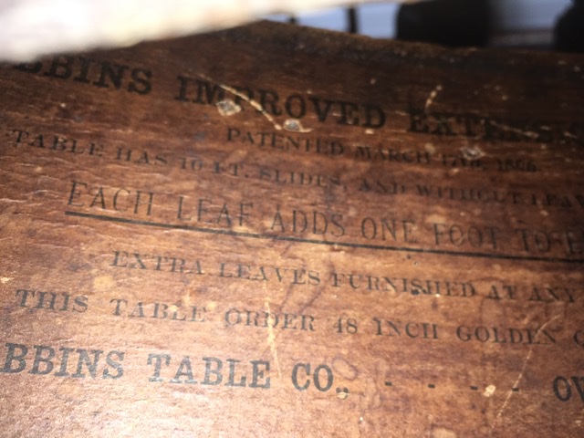 I have a Robbins Improved Extention Table. I have done some research on it, but can't find another one just like it. It has the 5 large round carved legs and 6 (I believe) leaves that make it 12 feet when fully extended. It has 6 chairs that may have come with it.The thing is, it is oval, I can only find rectangular tables with these legs. Wondering if others have seen this type, are they rare? Does this increase the value? Any idea on value?