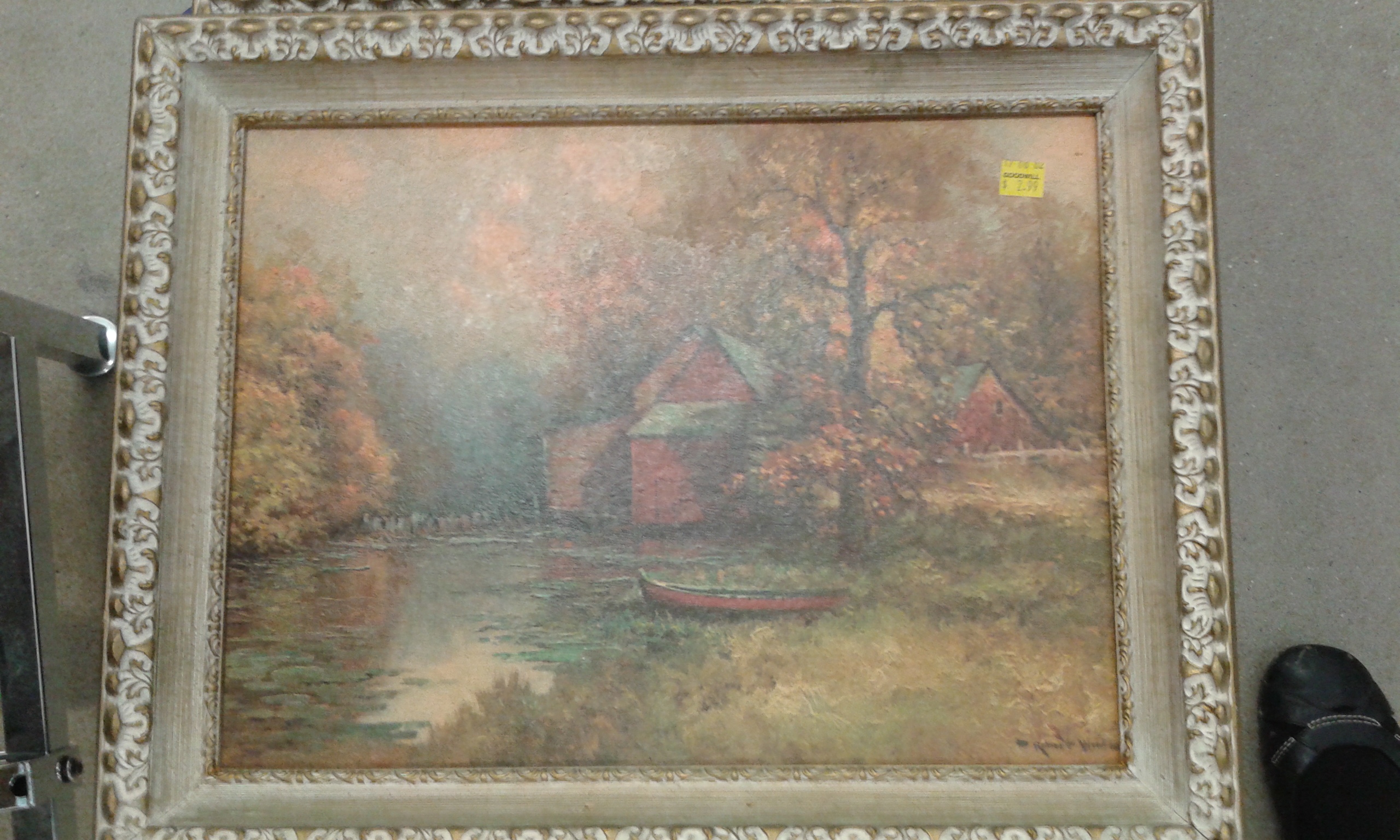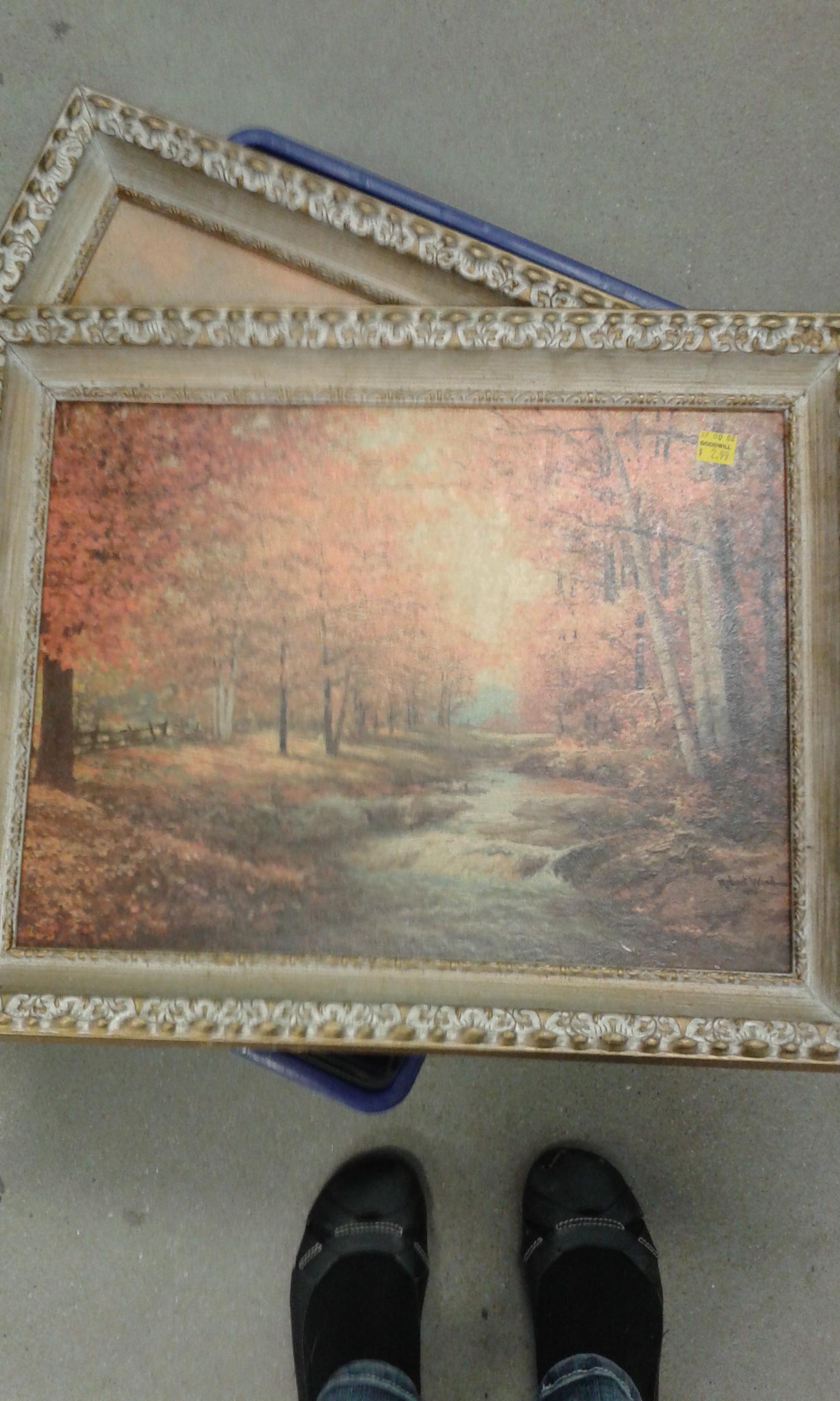 I have 2 Robert Wood reproductions from Windsor Art Products/Illinois Moulding Company. One painting is, I think, Autumn Leaves (1959) and the other is a wheel house and canoe by a river