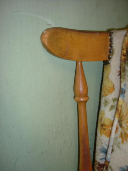 Was given to me in 1978. Belonged to a friends Grandmother that passed on. Has been reupholstered once. Still rocks good.
