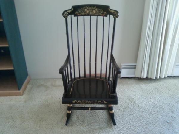 This very nice chair,s sticker reads: Made of selected Northern Hardwood,Nicholas and Stone Company.The home of the Windsor Chairs.Gardener Massachusetts, 696 114