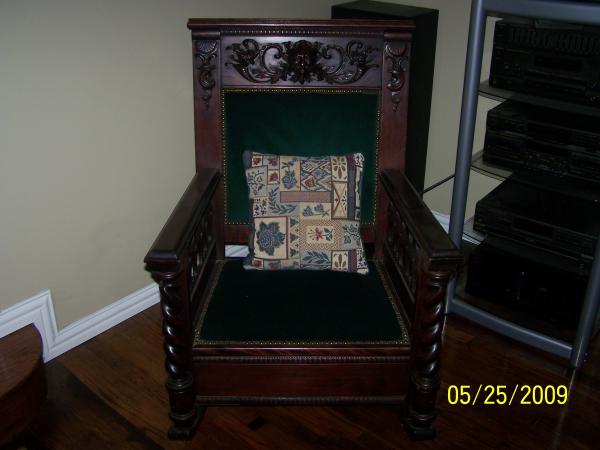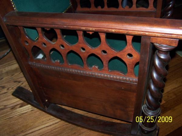 HEAVY DUTY ROCKER, BOTTOM ROCKERS ARE HVY DUTY LOOKS LIKE 1X4 VERY HEAVY CHAIR 33-34 INCHS WIDE I CALL IT A MANS ROCKER I WOULD REALLY LIKE TO GET ALL THE INFORMATION I CAN ABOUT THIS CHAIR. I HAVE HAD IT 13 YEARS NOW. AND STILL DONT KNOW ANYTHING ABOUT IT.