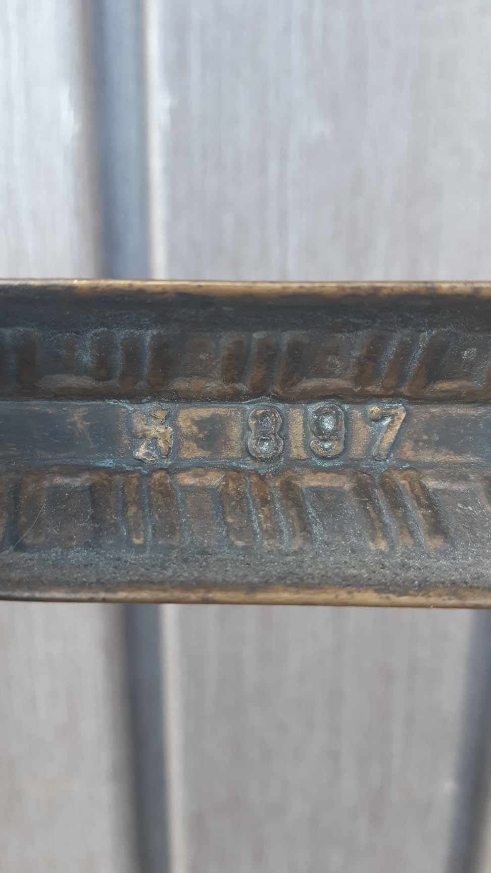 It is fully made of massive Brass and has 3 stamps indicating some kind of serial number.