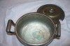 There is a lock on the front of the box and hinges on the back. The inside is carved so that two glass bottles sit in the box. One bottle has not contents and has a glass lod on it, the other jar appears to have a brass or silver lid and when opened appears to have straw seeds in it.