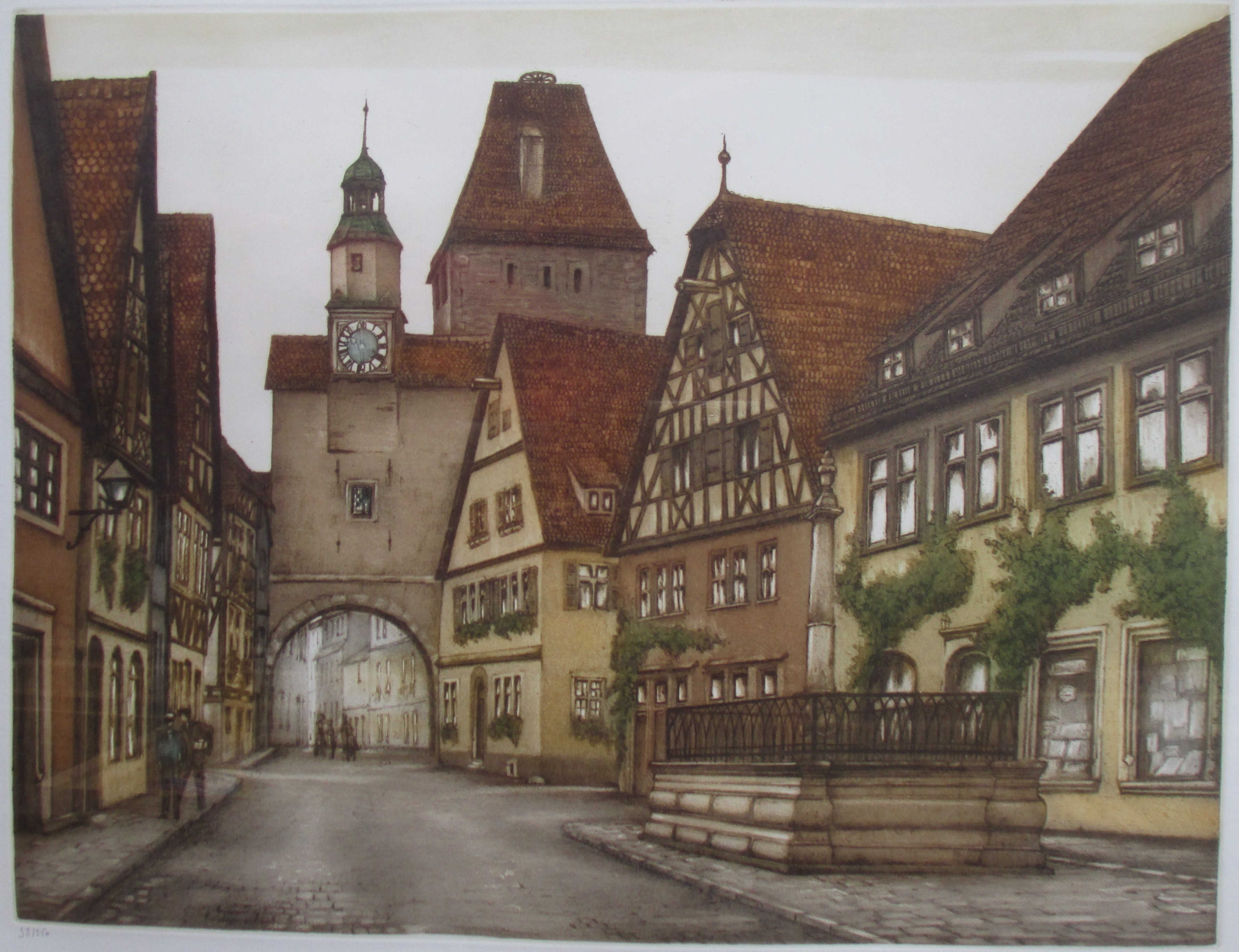 “Copyright by Stehli Brothers. Ltd. 8032 Zurich Hand printed etching in color”