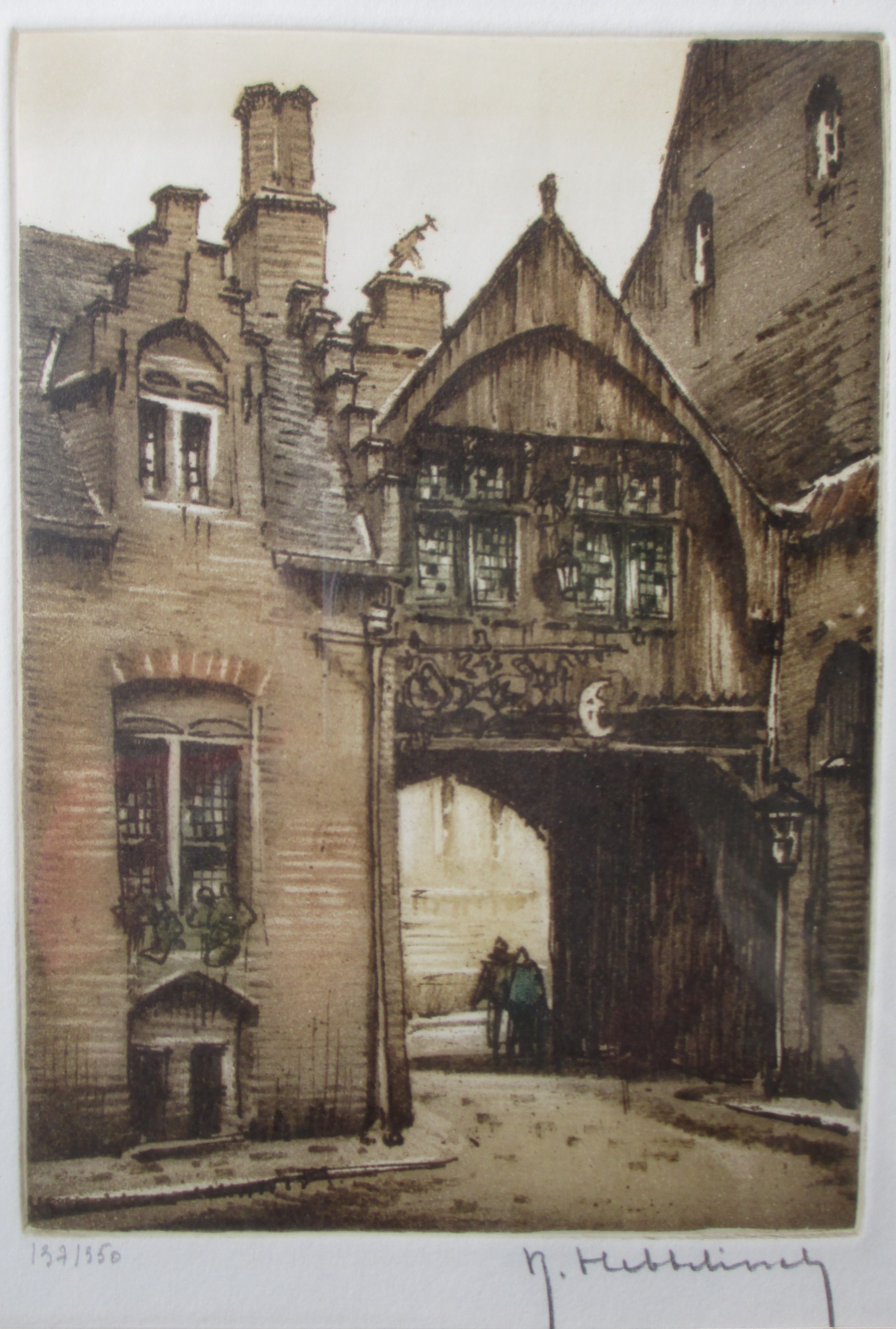 My evidence linking this etching to Hebbelinck is based on two smaller 5”w x 7”h etchings I also inherited. I don’t know their titles but have matched the signatures to Roger R. Hebbelinck via the internet. These etchings also have the same notation: