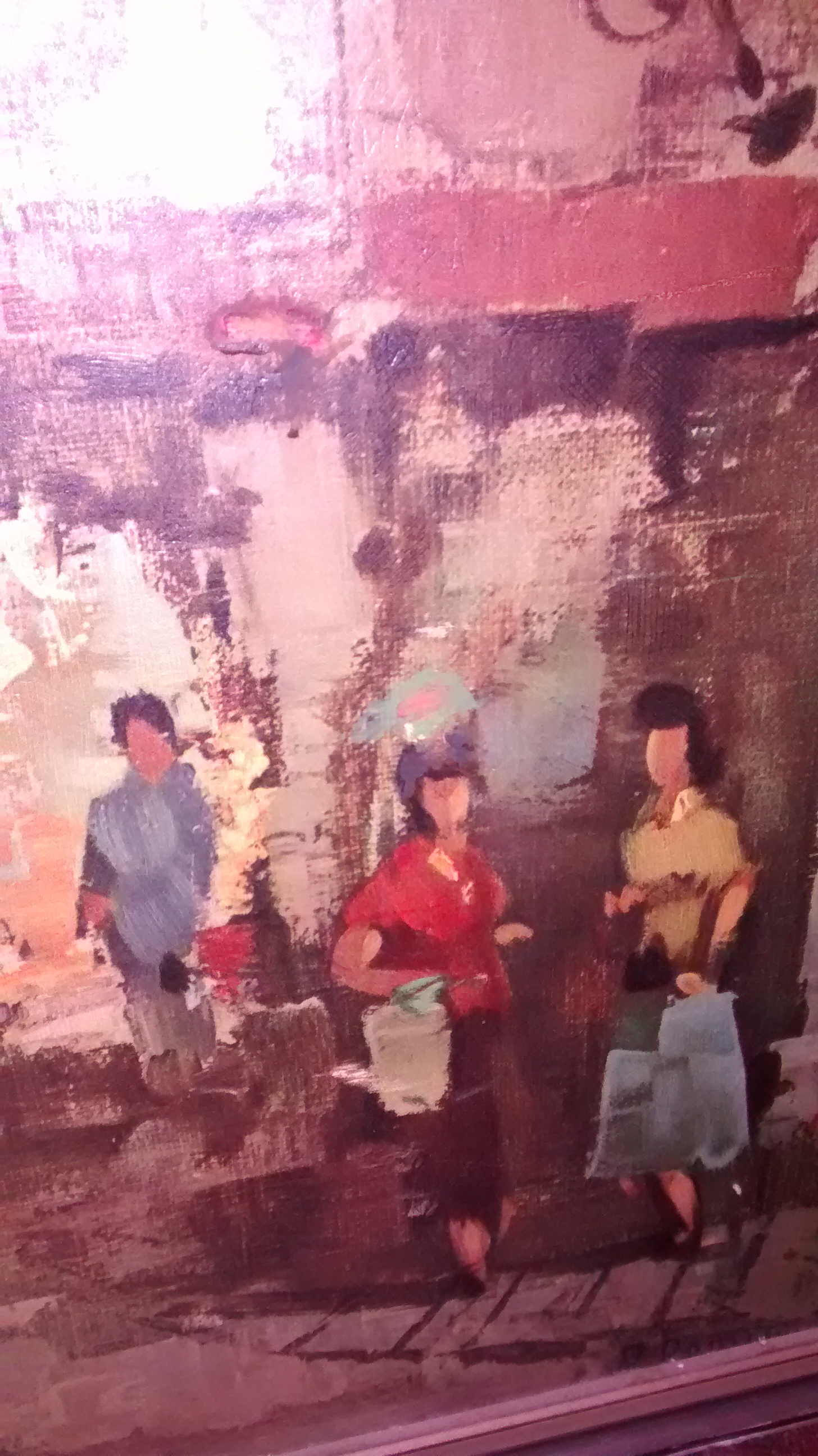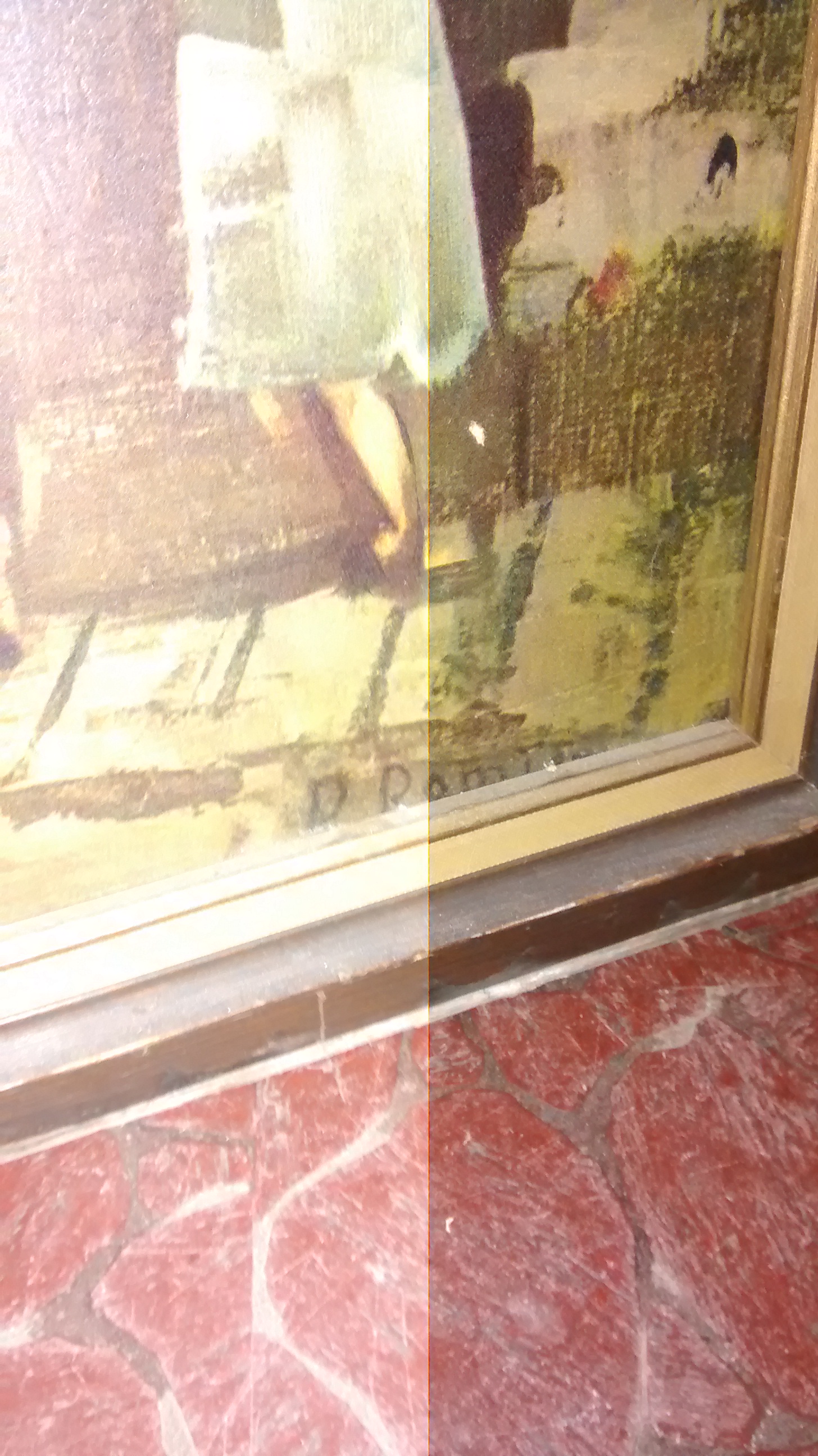 Description A painting discovered in home years ago. Having difficulty seeing who the artist is. The frame has their name half covered and believe the painting will be damaged if an attempt to remove painting from frame is made.