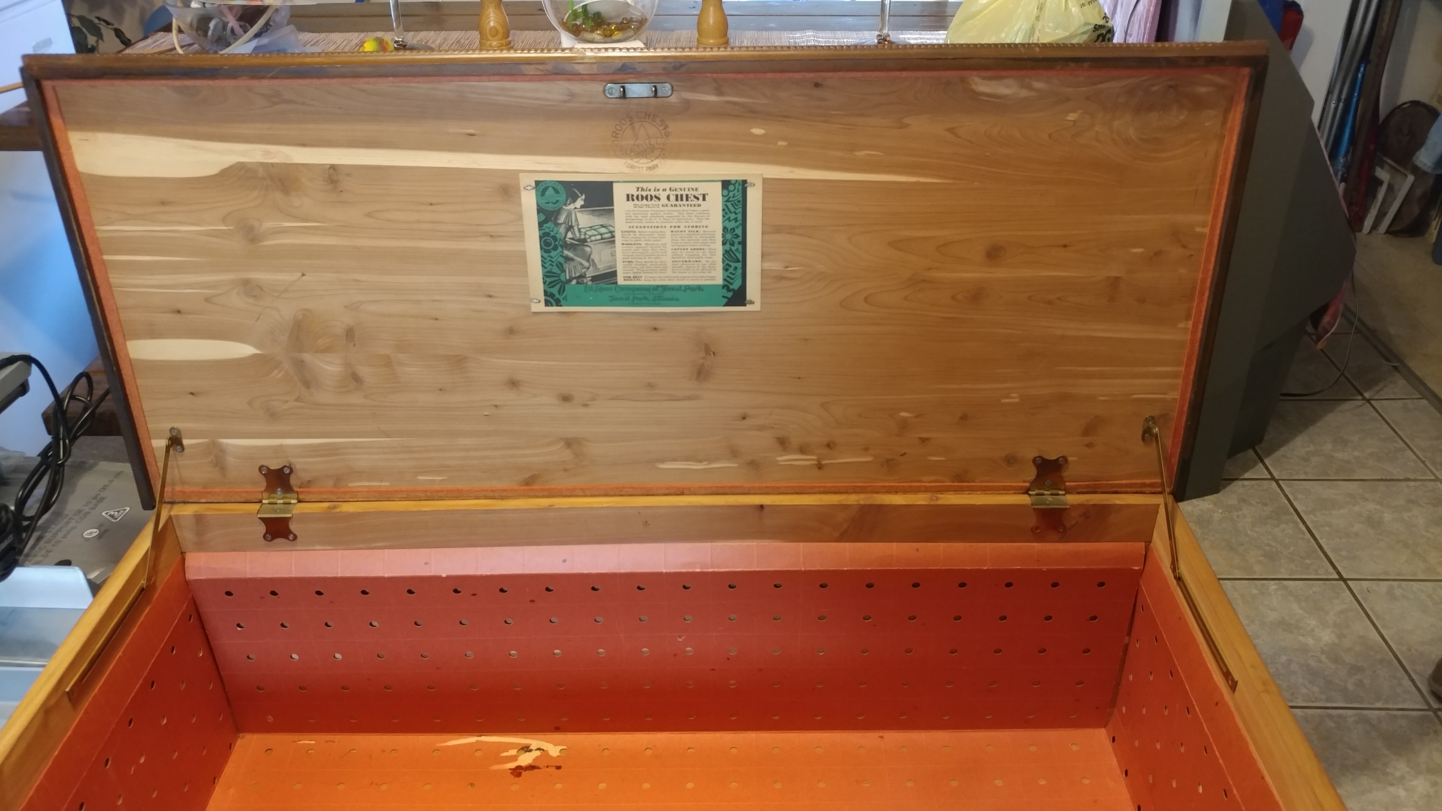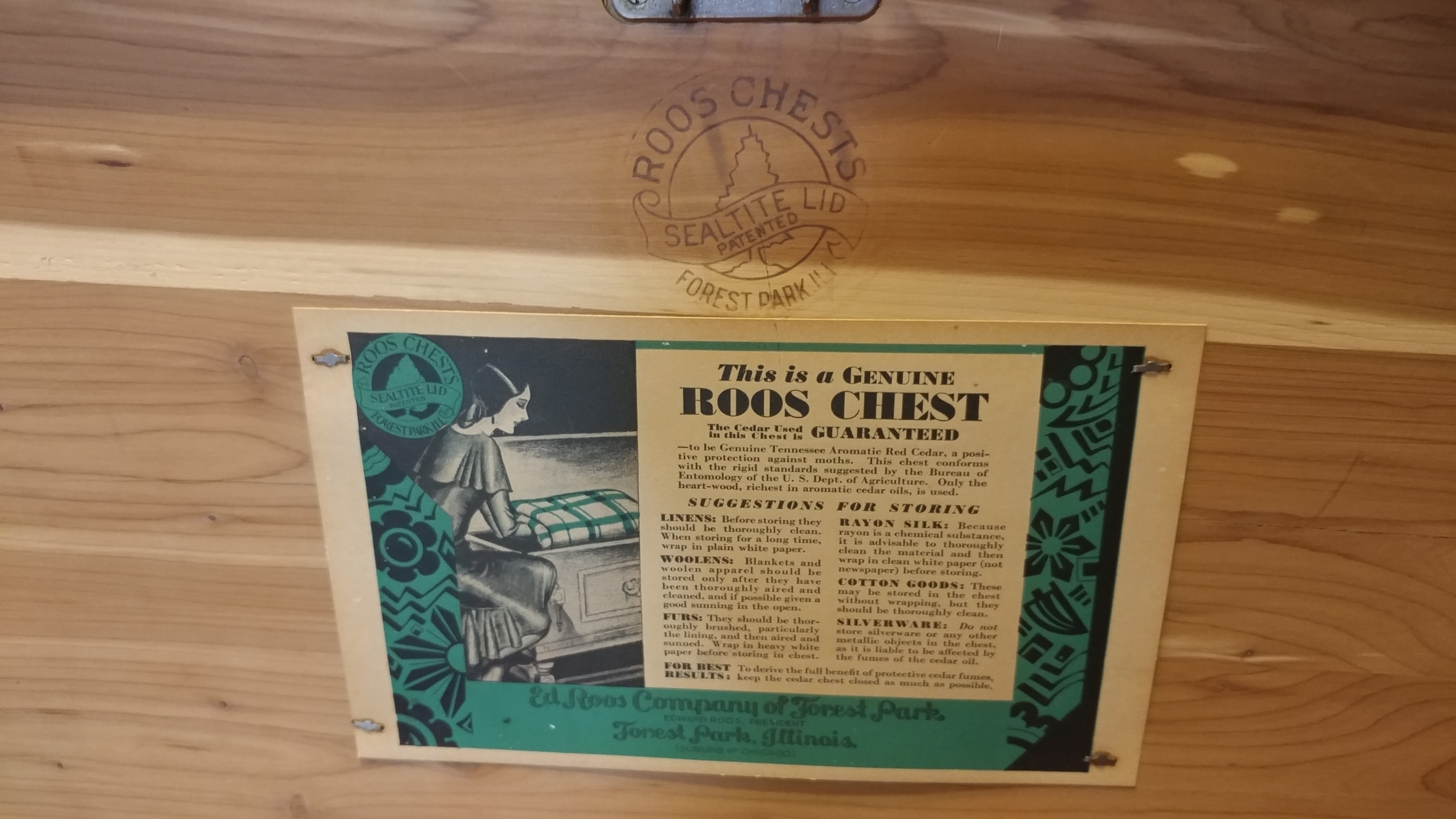 Roos Chest with Instructions in lid. Does have some minor damage to top of lid. I do not have the key for this.